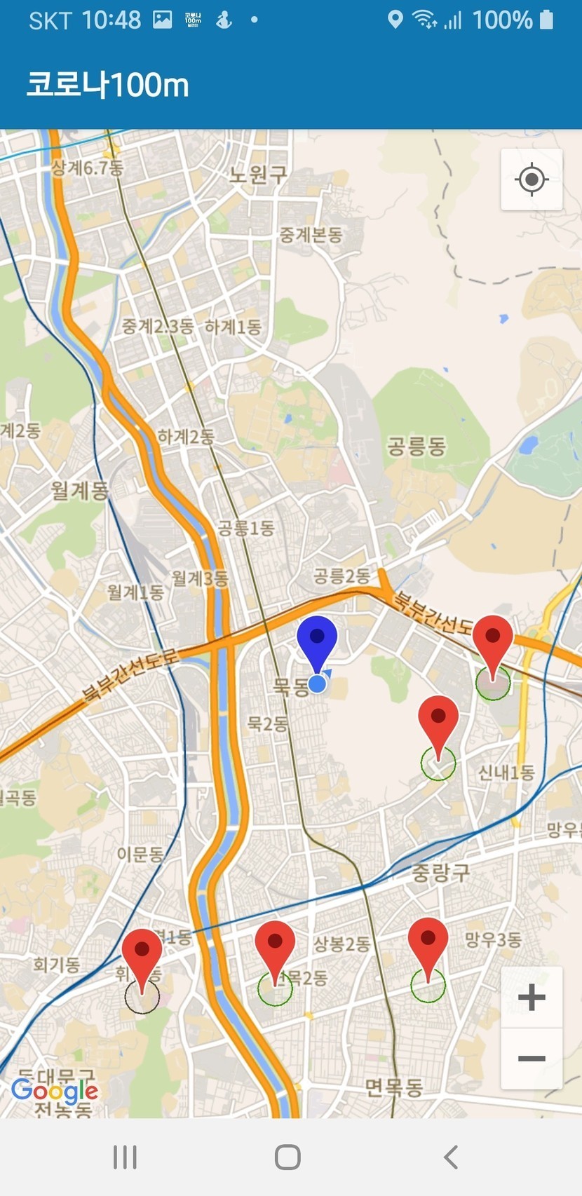 2. 내위치와 확진자 방문 위치가 지도에 표시
