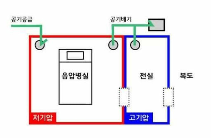 즉, 기압 차로 인해 병실 밖의 공기는 들어오지만,
