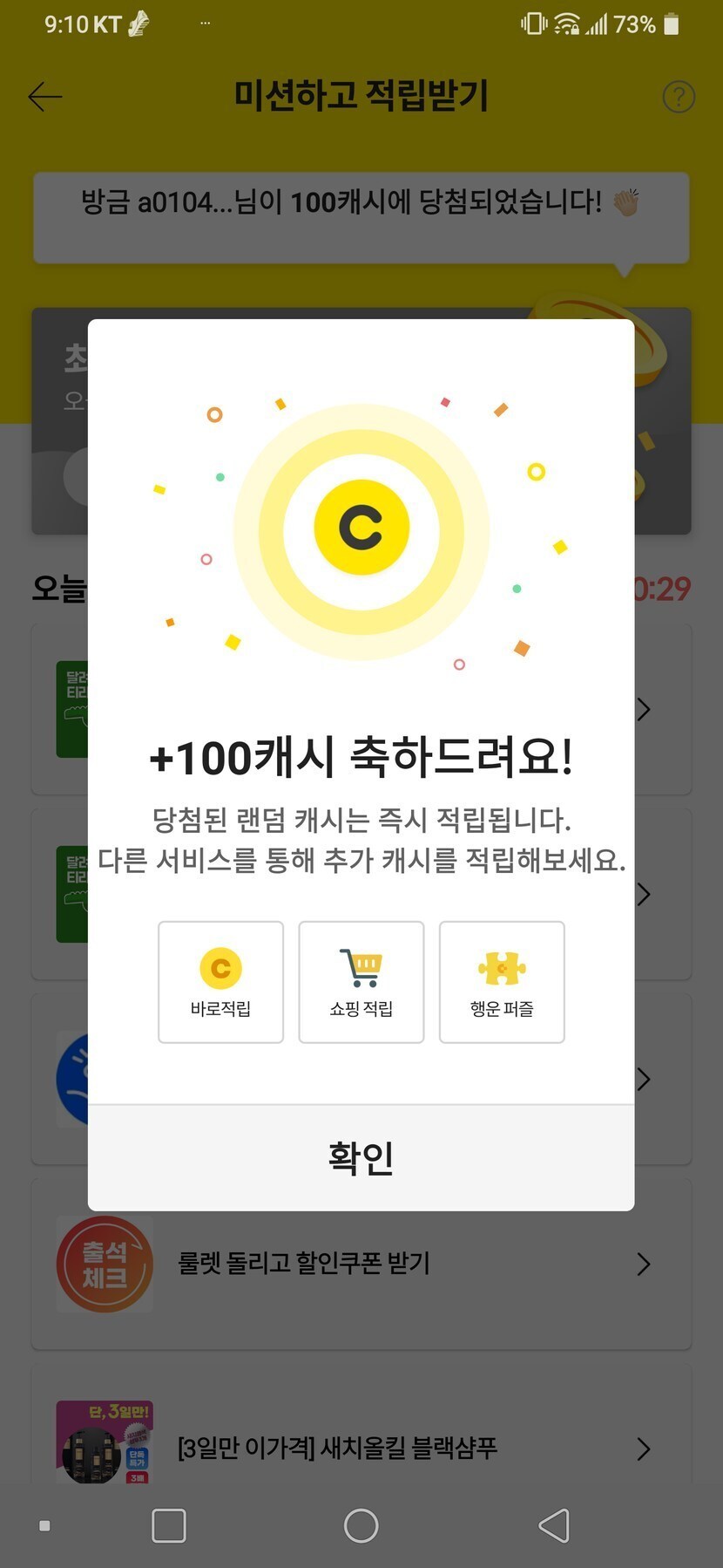 미션완료 100캐시