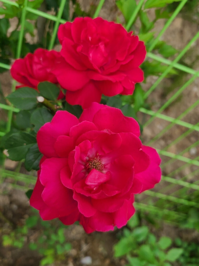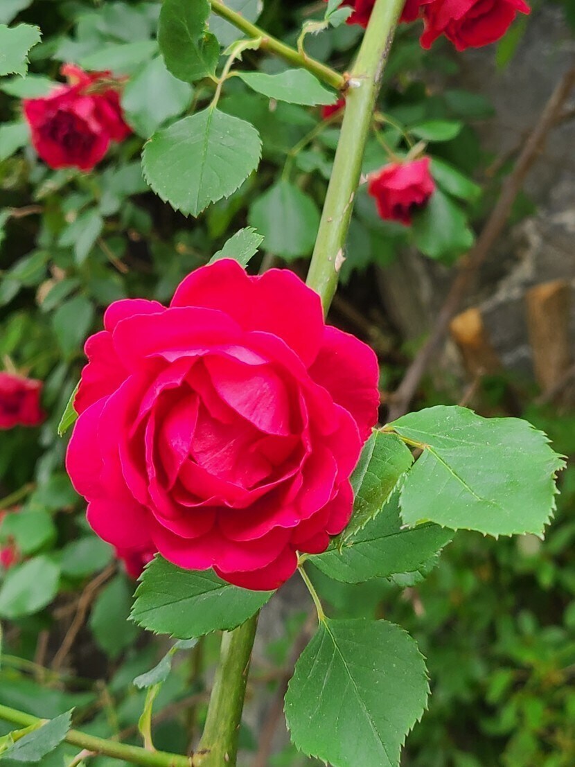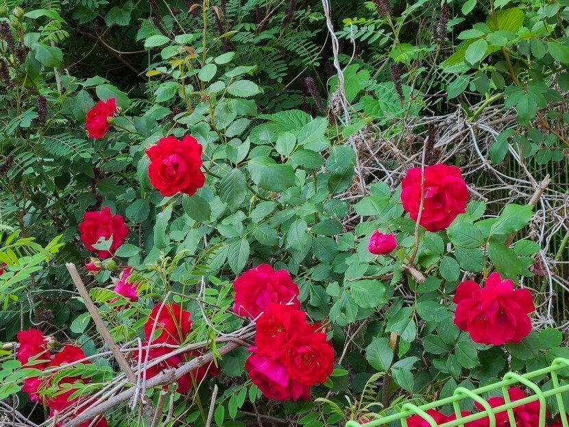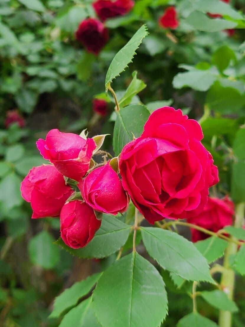 장미꽃들 보며 웃음 활짝