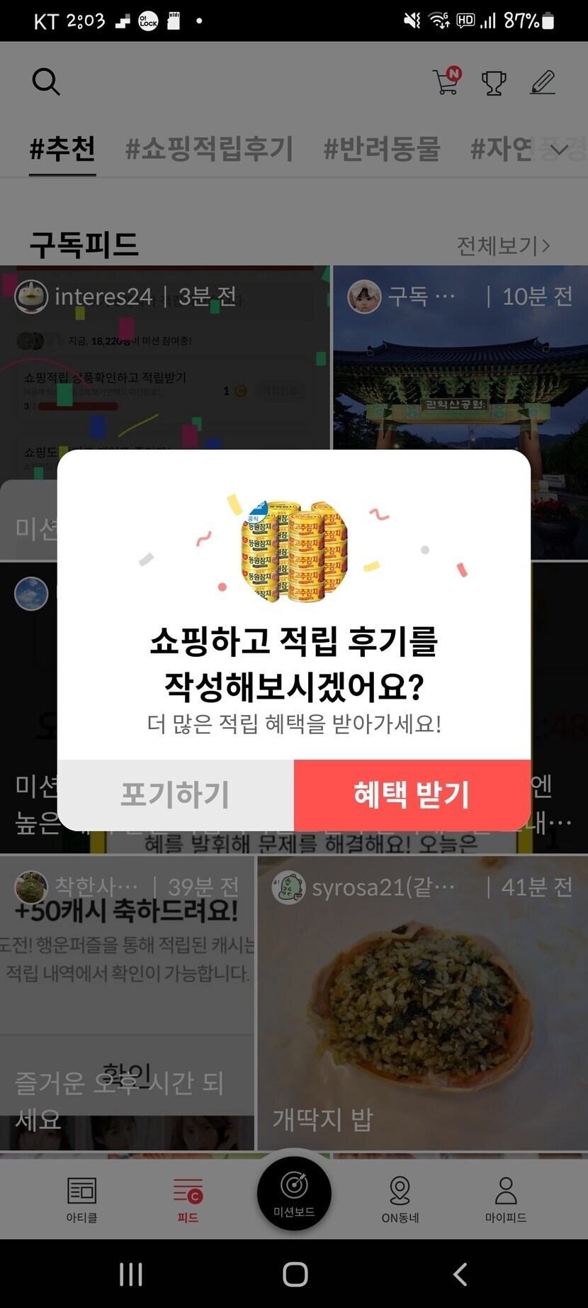 22.06.12 1,013 읽음 계속 뜨네요~ s0103❤답방+구독좋아요👍 구독하기 74 87 콘텐츠의 수익 160 얼마전 할인쿠폰적용받고 샀는데 후기 쓰라고계속뜨네요 참치사진을 못찍어놔서 그냥 캡쳐사진 올려요~ 87 0 / 300 입력