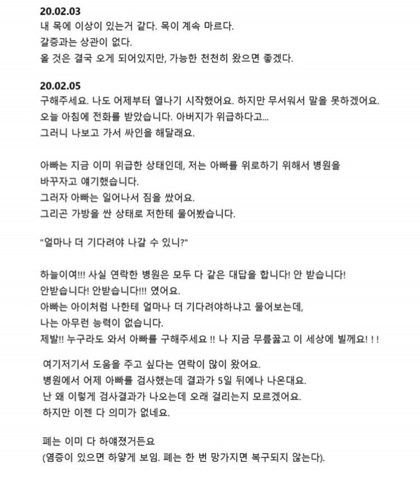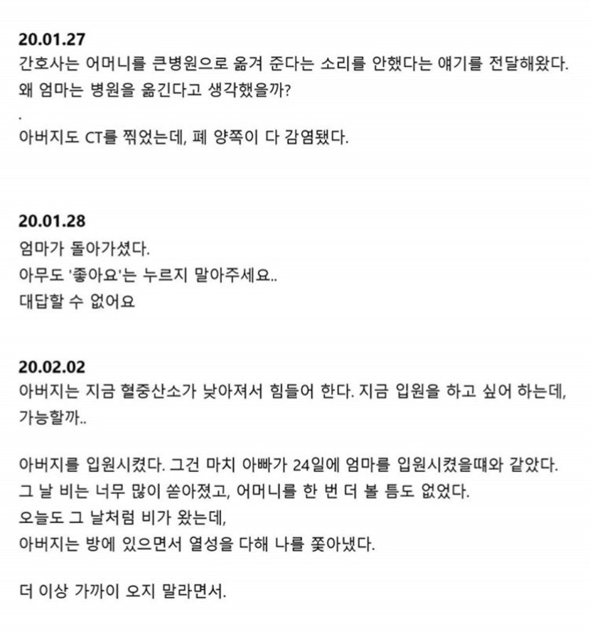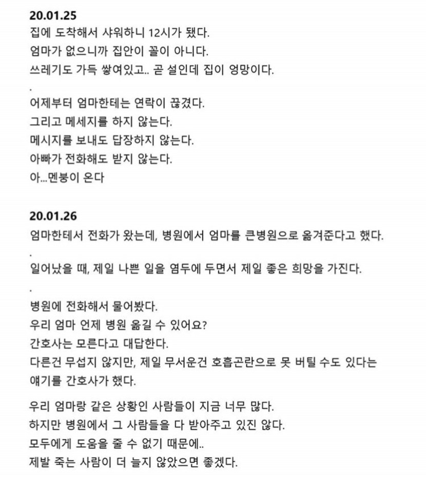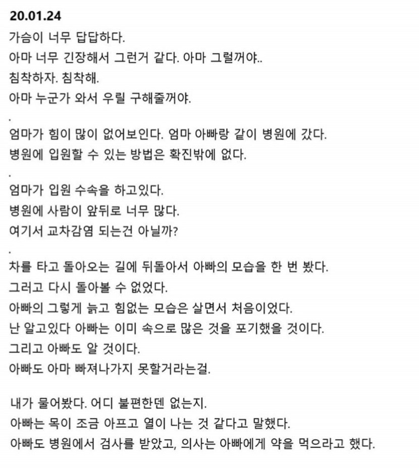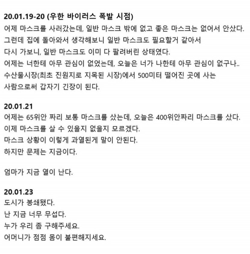 '우한여성이 남긴 일기'라는 내용을 보고서,