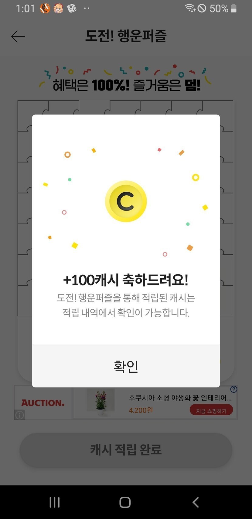 행퍼 100캐시 성공