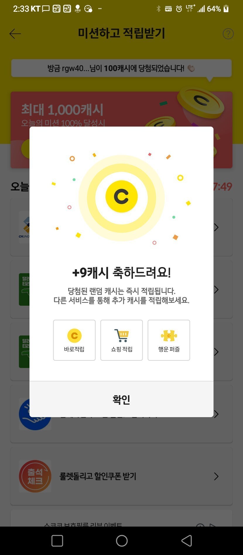 오늘의 캐시