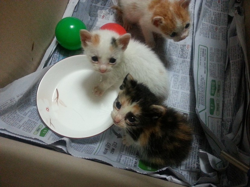 7년전 우연히 산에 갔다가 어미 없이 있는 세마리 냥이들.. 눈도 겨우 뜬 애들.