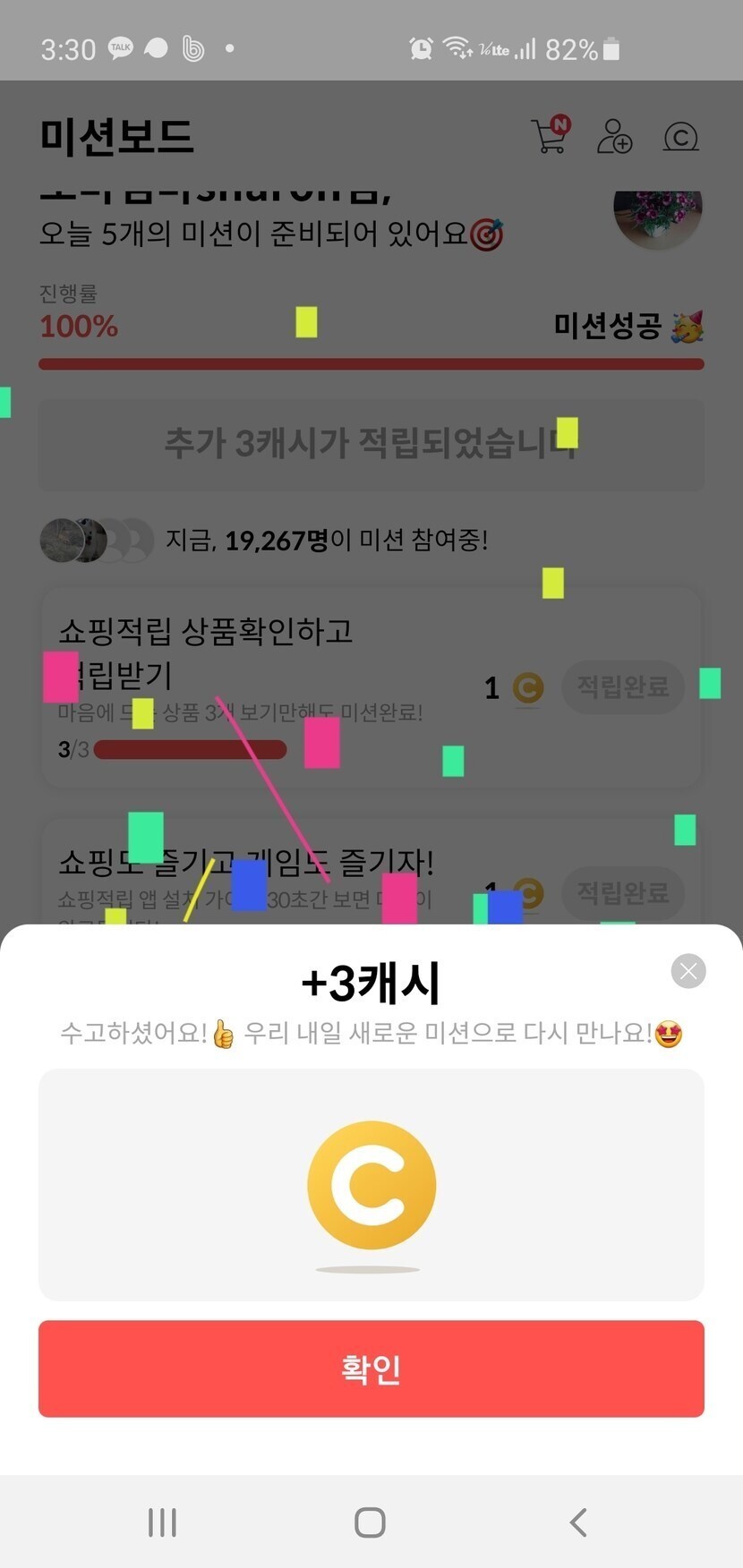 오늘미션 완료