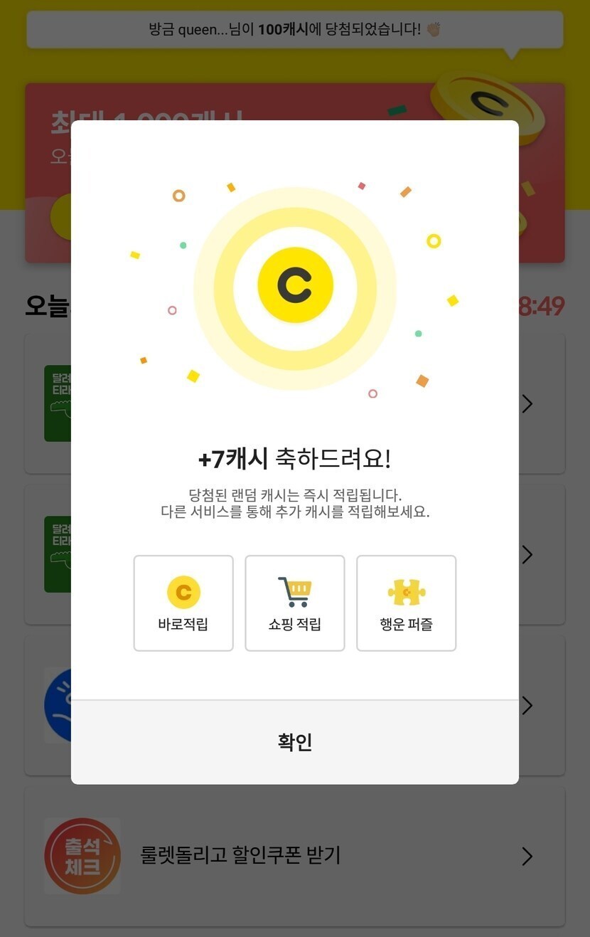 미션 적립 완료