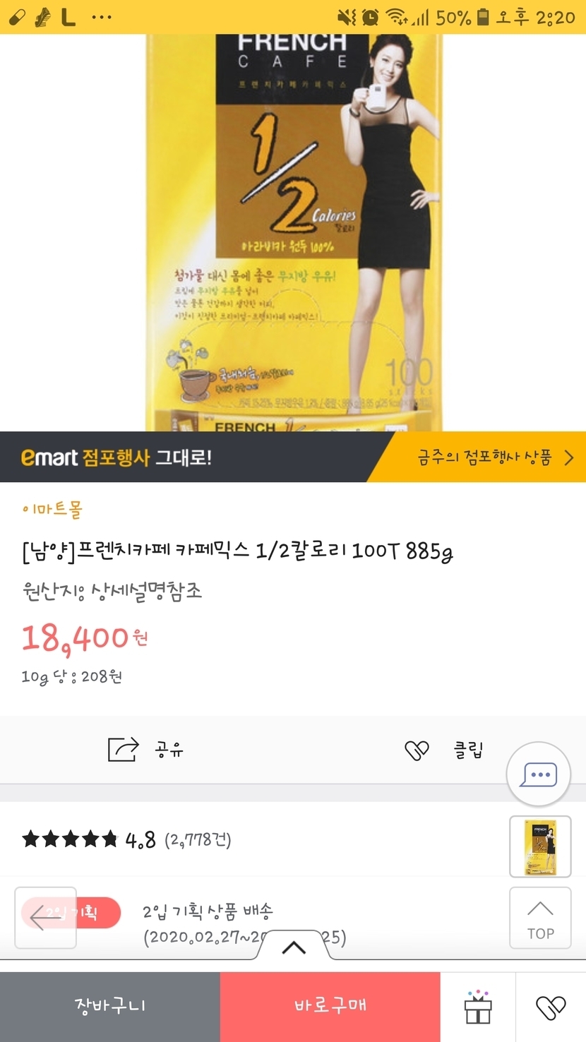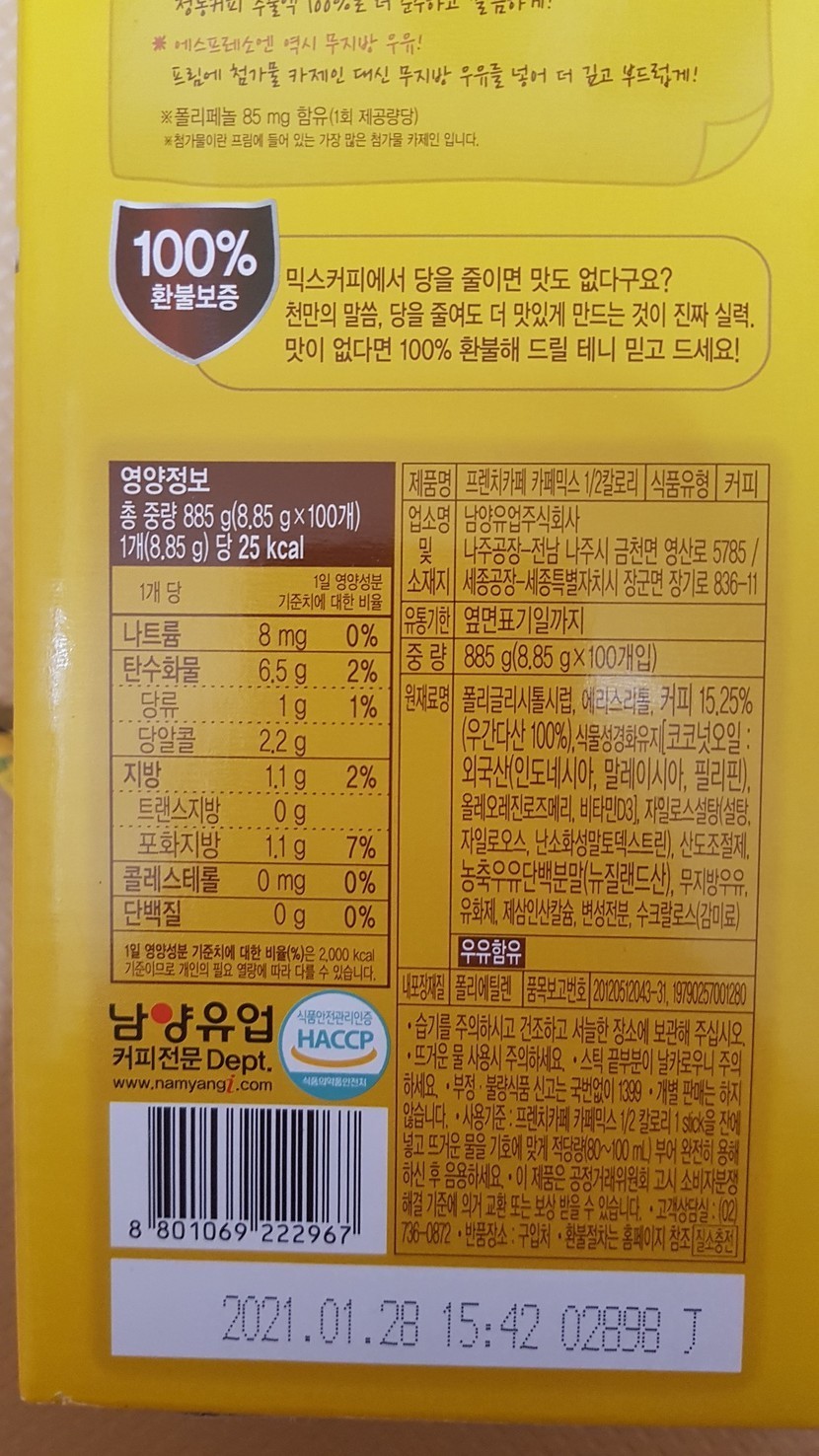 ํ๋ ์น์นดํ ์ปคํผ๋ฏน์ค 1/2์นผ๋ก๋ฆฌ ์ ๋๋ค^^