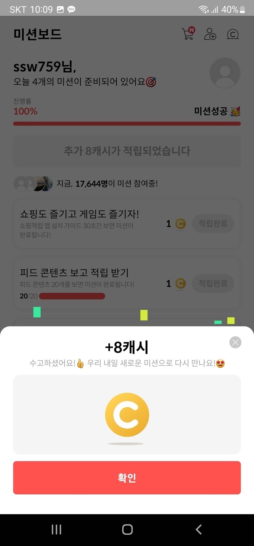 첨으로 8캐시 받음