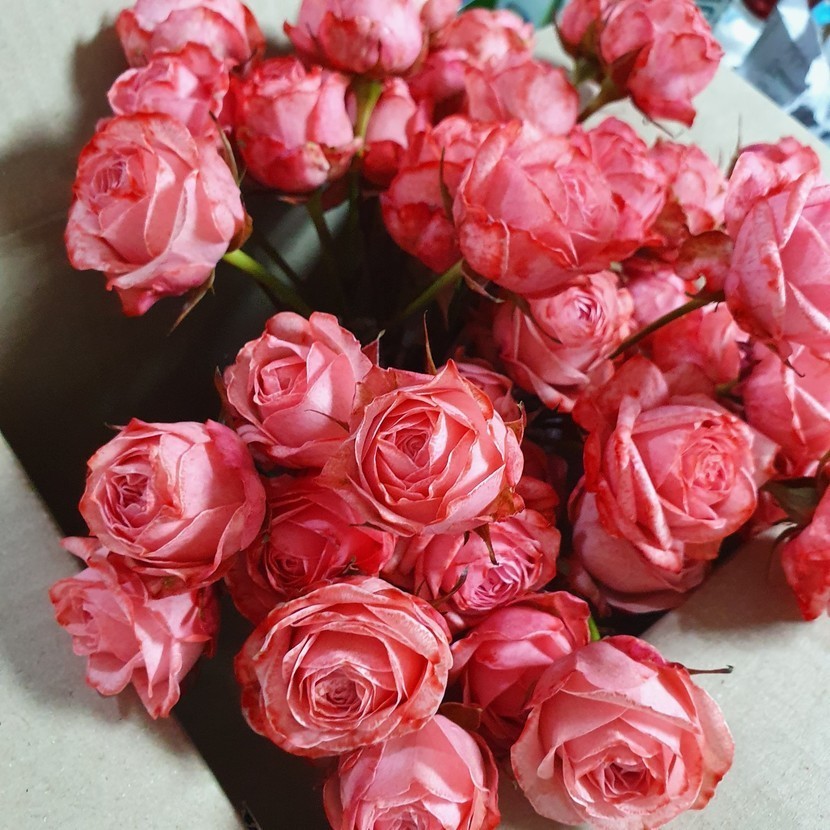 이건 물올린한지 3시간째 ㅋㅋㅋ 색이 조금 붉은색이 도는가 싶더니 붉은 반점이 생겨 있더라구요.