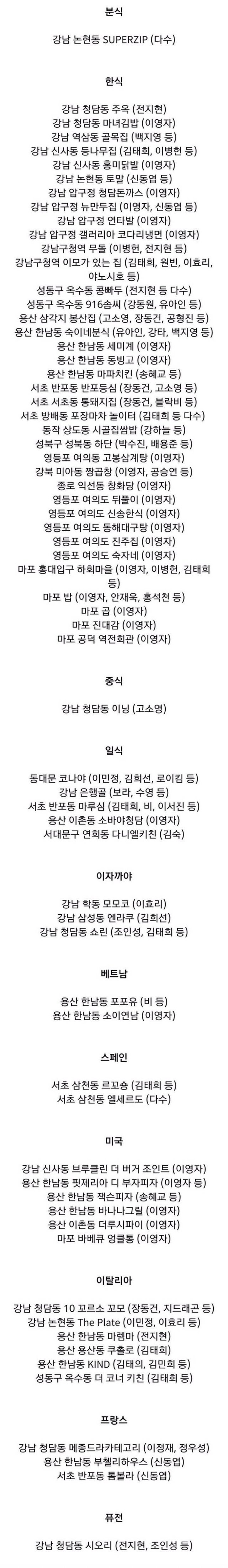 연예인들이 자주 가는 맛집 정리.jpg