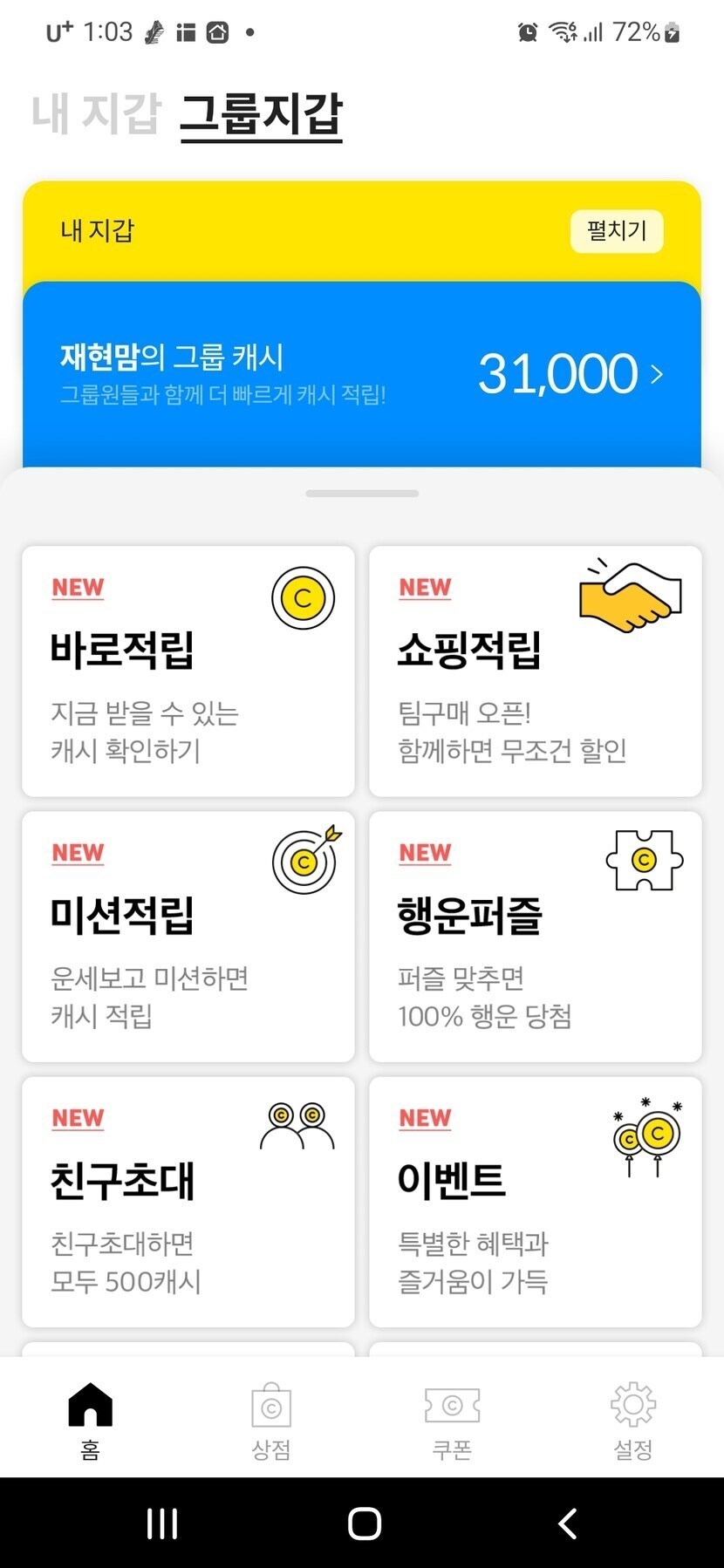 개인 캐시아웃까지 딱 반 왔어요