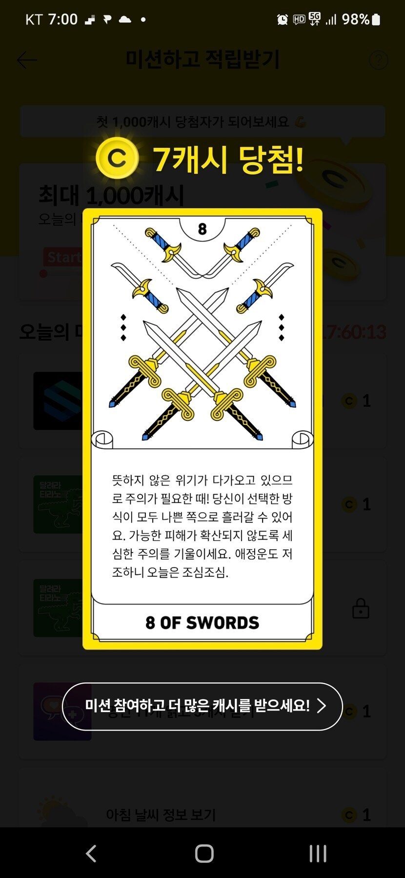 22.08.05 372 읽음 8월 5일 명언, 타로 ^비드^ 구독하기 130 130 콘텐츠의 수익 15 8월에 첫번째 불금이네요오늘도 즐거운 하루 되세요🤗🤗🤗 130 0 / 300 입력
