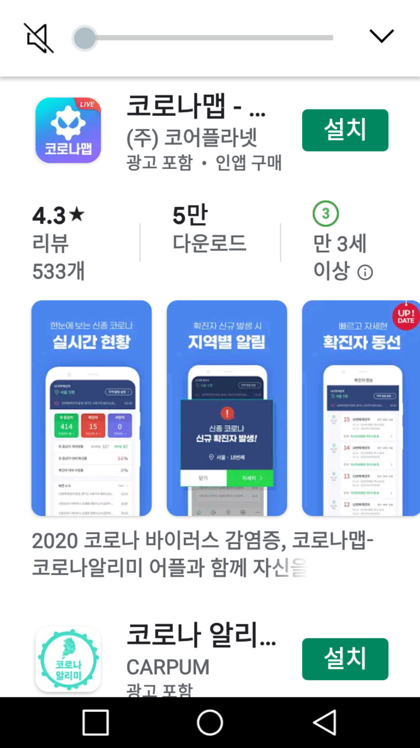 20.03.03 110 읽음 코로나100m알리미 방귀대장뿡뿡이0613 구독하기 0 2 콘텐츠의 수익 14 플레이스토어코로나100m알리미검색여러가지어플있어요 확진자동선 등등무료라는데 정말좋은것같아요살고잇는곳 위험지역아닙니다 알려주네요 2 0 / 300 입력