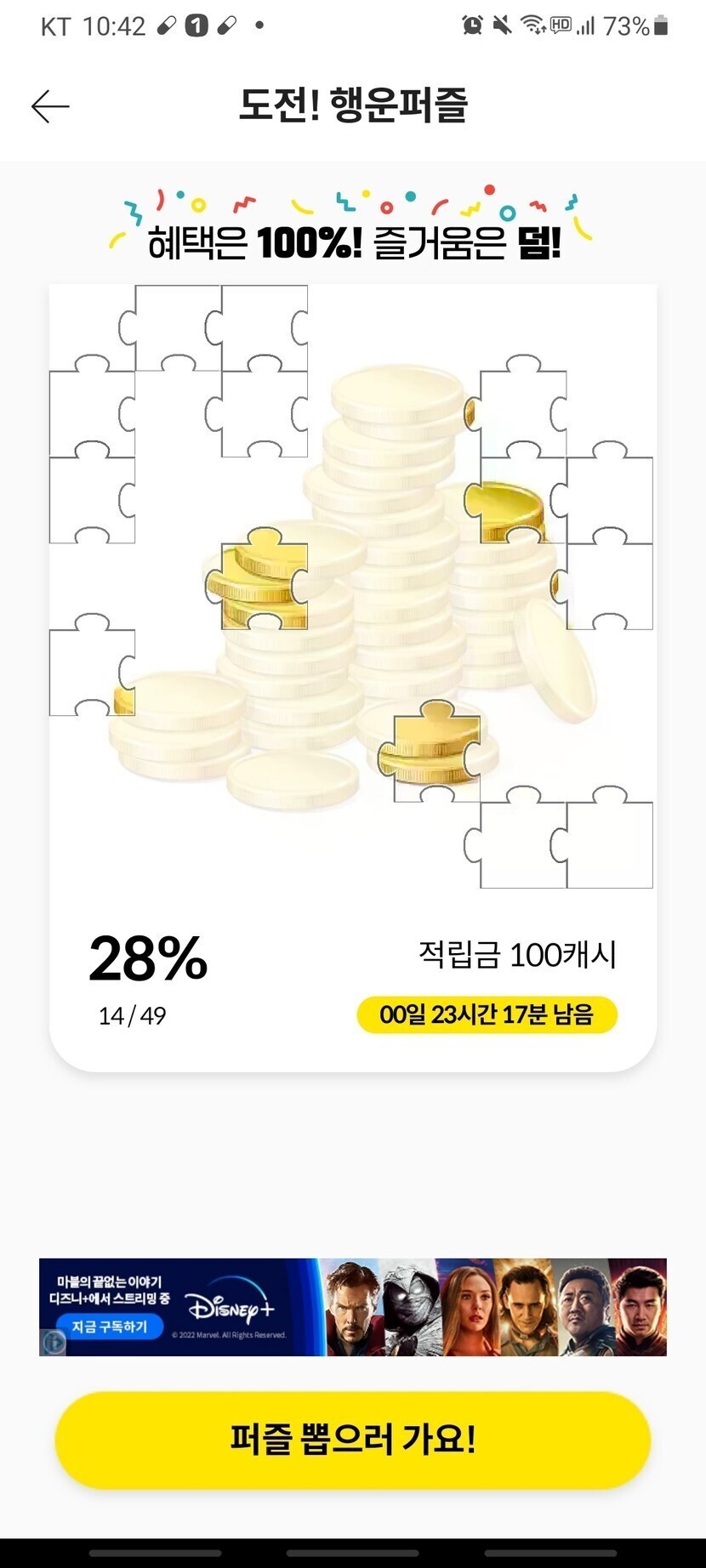 오늘 100캐시도전