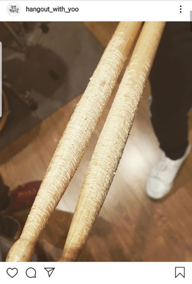 유재석이 사용했던 드럼스틱의 상태.jpg