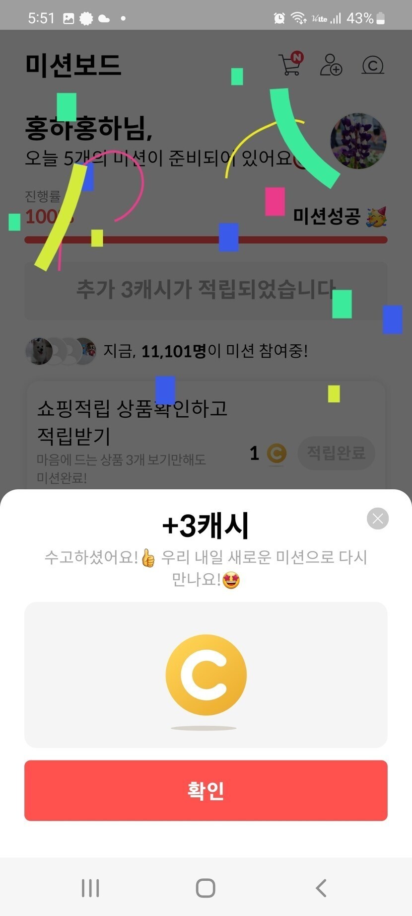 미션완성~ 당첨~