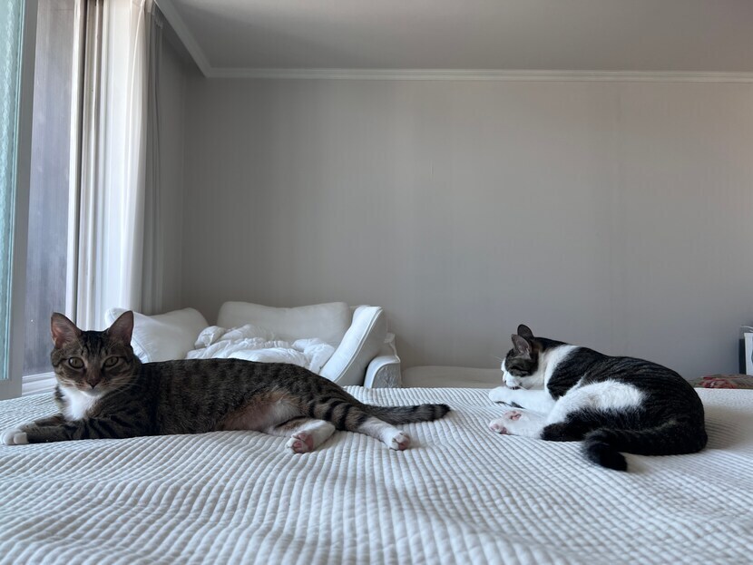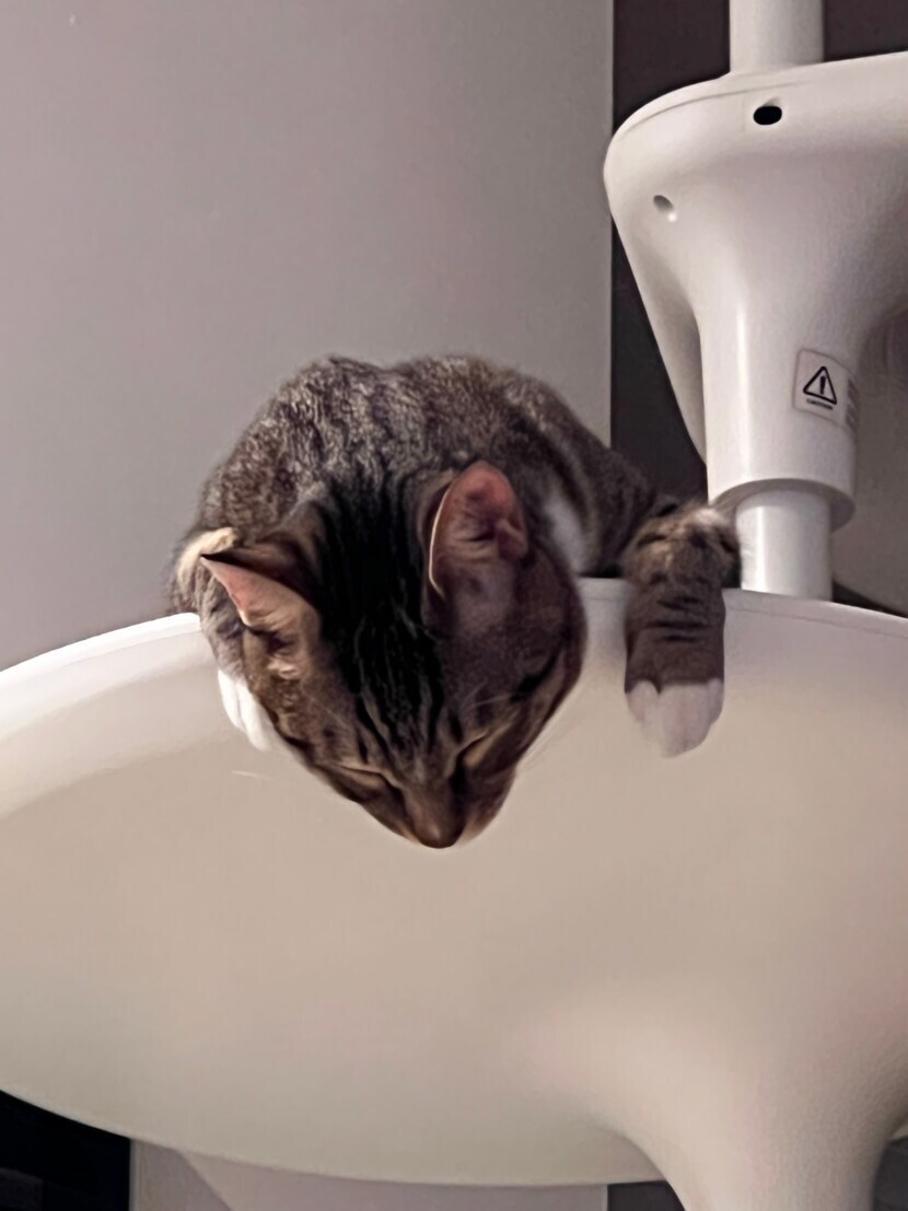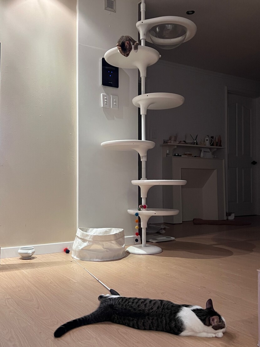캣타워 아래서 무슨 일이 있나 들여다보다 잠든 모습이에요 ㅋ