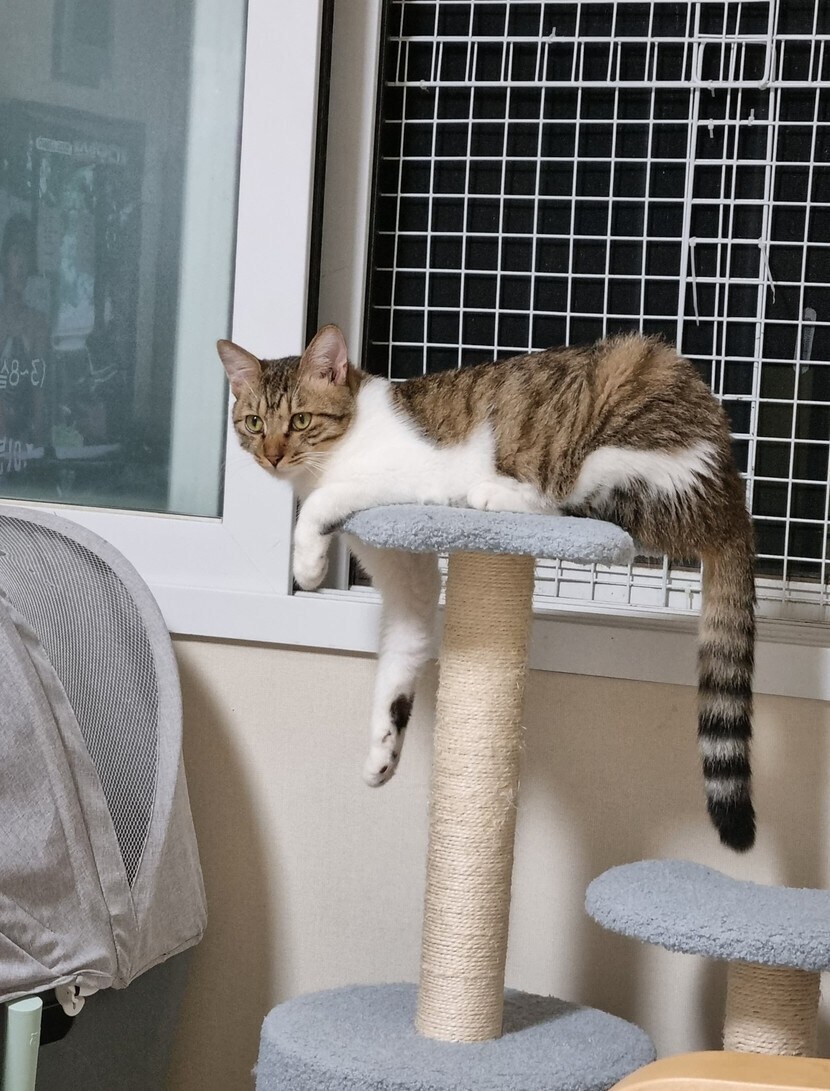 캣타워 위의 이쁜 빨래