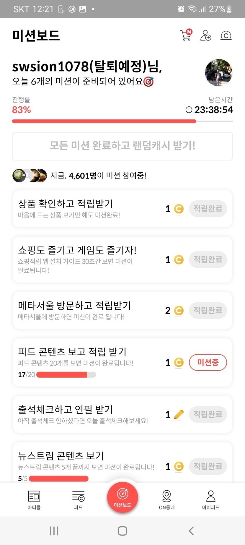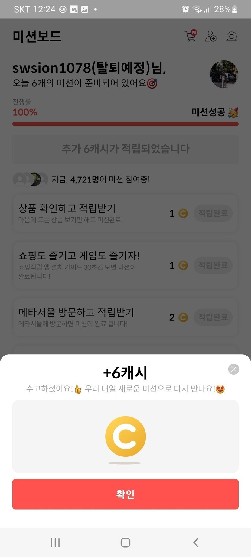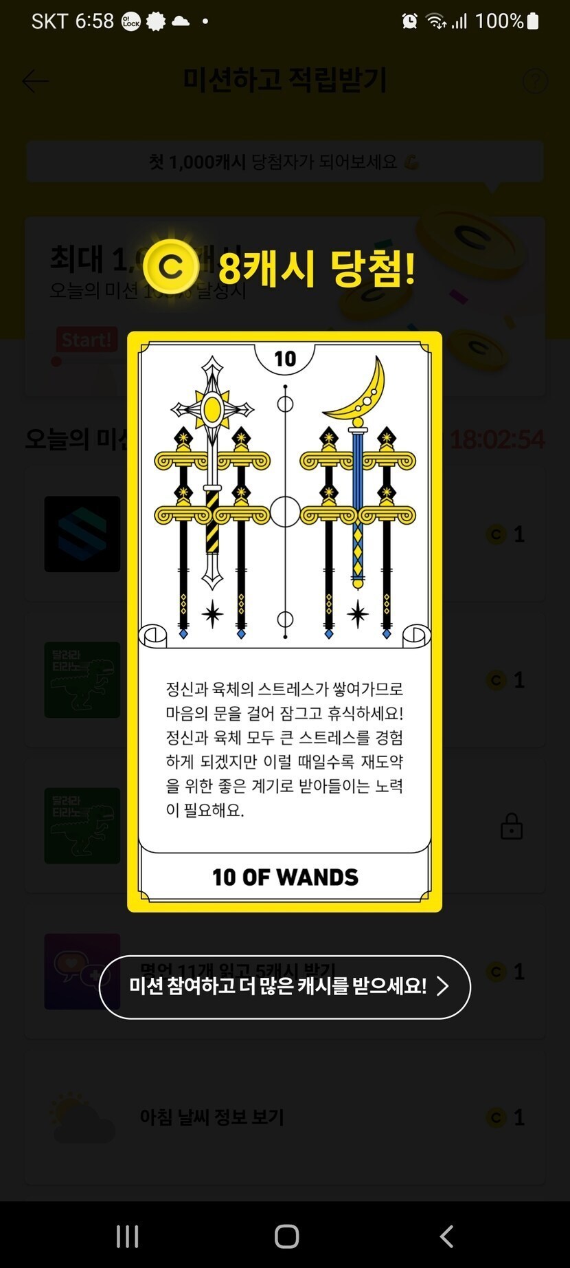 22.08.26 66 읽음 랜덤캐시,미션보드 미션완료!! swsion1078(탈퇴예정) 구독하기 5 5 콘텐츠의 수익 1 8월26일 랜덤캐시 미션완료 14캐시, 미션보드 미션완료 6캐시, 타로카드는 8캐시 받았어요. 5 0 / 300 입력