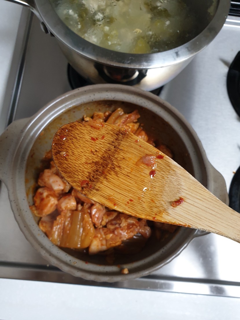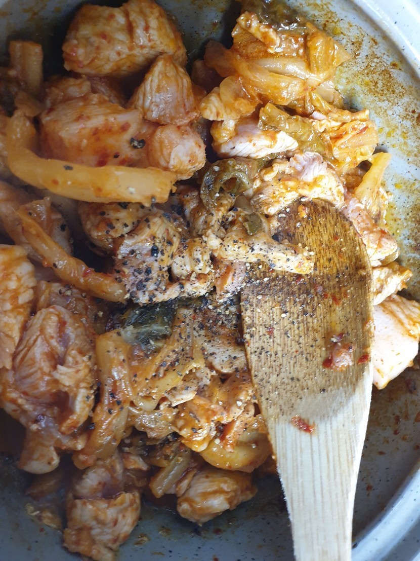 20.03.06 211 읽음 날씨가 다시 쌀쌀할 땐 돼지김치찌개♡ 호치냠냠 구독하기 0 16 콘텐츠의 수익 35 날씨가 쌀쌀할땐 흰 밥에 돼지김치찌개 만한게 없죠? ㅎㅎ 돼지김치찌개 쉽게 하큰 법을 알아봐요먼저 김치와 돼지고기를 볶습니다 볶기전에 설탕을 넣고 같이 볶아요잡내랄 잡기 위해 맛술도 조금 넣구요후추도 조금 넣어주세요이제 적당히 잔길만큼 물을 넣고 끓여주세요물이 끓으면 양파와 파 간마늘 투입이제 간을 해야되는데요 먼저 고춧가루국간장맛소금마비막으로 김치국물♡이제 완성!누구나 쉽게 만들 수 있는 돼지김치찌개 해보세요 ^^ 16 0 / 300 입력