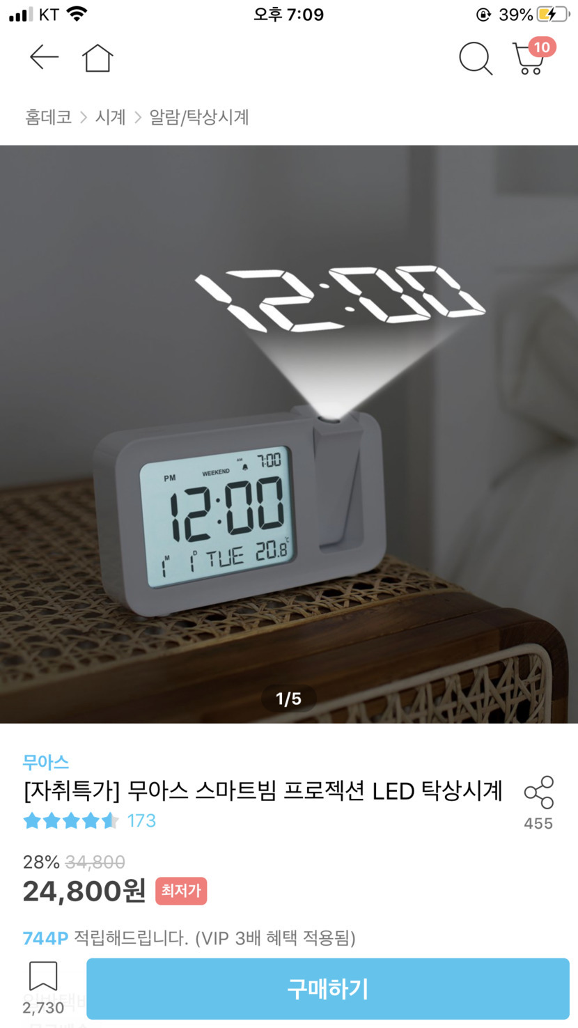 20.03.06 127 읽음 빔으로 시간쏴주는 전자시계! 봉봉큐뀨 구독하기 1 4 콘텐츠의 수익 17 일반전자시계 치고는 가격대가 조금더나가긴하지만생긴것도 이쁘고 무엇보다 편리해요!자다가 깼을때 시간도 바로보이고 벽면에 쏘인 숫자도 예뻐요강추합니다 4 0 / 300 입력