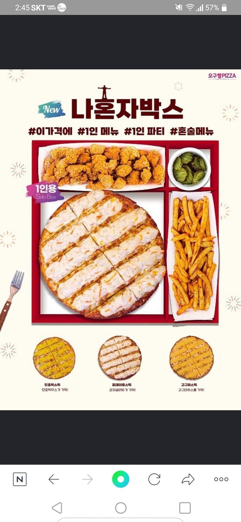 22.09.01 137 읽음 오구쌀피자 "나혼자박스"출시 tnsehf9 구독하기 3 5 콘텐츠의 수익 2 나혼자박스는 나 혼자 또는 함께 즐기는 1인 혼밥 세트메뉴로 피자스틱,통치킨볼,양념감자,피클로 구성된 가성비 끝판왕 메뉴라고한다. 5 0 / 300 입력