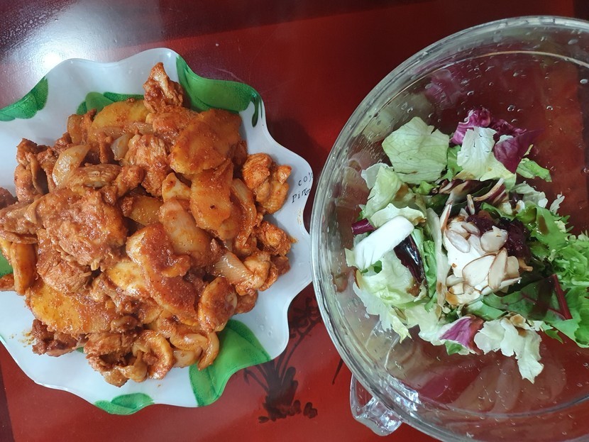 20.03.07 176 읽음 집에서 먹는 닭갈비 입니다 ladycho 구독하기 1 10 콘텐츠의 수익 11 집에서 먹는 닭갈비 입니다ㅎ샐러드도 구입했죠^^고구마랑 양배추를 넣어야하지만 저는 고구마랑 양파를 넣었답니당고구마가 익으면 닭도 익었다고 하더라고요떡국떡도 추가요ㅎ이래서 다들 예쁜그릇을 사는군요ㅎㅎ담에는 이쁜그릇으로^^,맛있게 먹어주는 아이들 이쁩니당ㅎㅎㅎ 10 0 / 300 입력