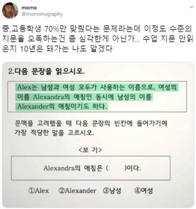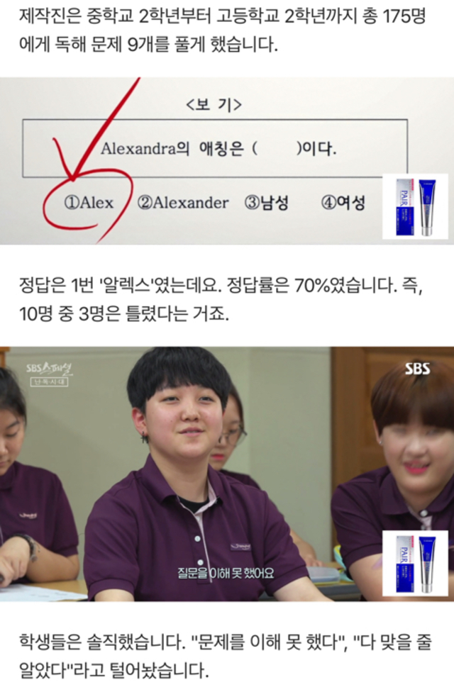 19.10.17 2,002 읽음 중·고등학생 70%만 답 맞혔다는 `난독증` 테스트 고혈압고지혈증 구독하기 1 3 콘텐츠의 수익 0 .........문제 출처SBS-TV 'SBS 스페셜중·고등학생 70%만 답 맞혔다는 '난독증' 테스트글을 읽을 때 오래 집중하기 힘들거나, 내용을 제대로 이해하기 힘든 분들 계신가요?많은 이들이 최근 난독증을... [더보기]www.dispatch.co.kr 3 0 / 300 입력