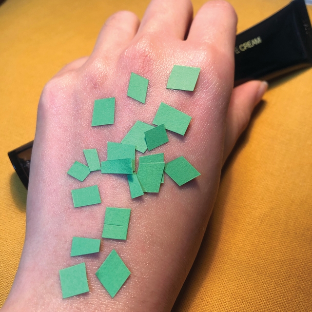 유분기는 기름종이에 제품을 덜어 1시간 후 얼마나 유분이 묻어났는지를 관찰했다.