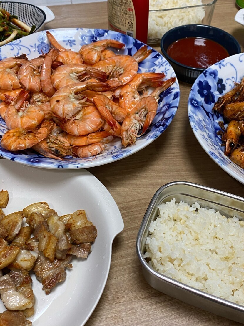 집에서 대하구이와 함께~~