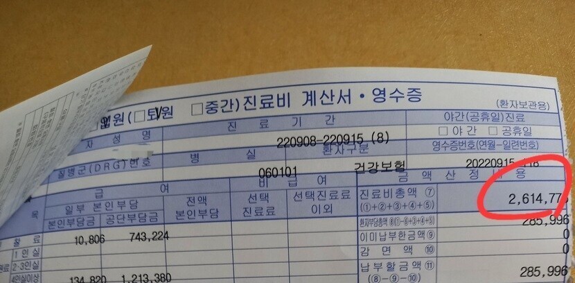 병원비가 얼마나 나왔는지