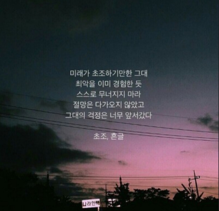 일단 제가 이 명언을 택한 이유는 ''그대의 걱정은 너무 앞서갔다.'' 라는 문구가 제게 무언가 와 닿았기 때문인데요(물론 주제가 걱정이지만요)