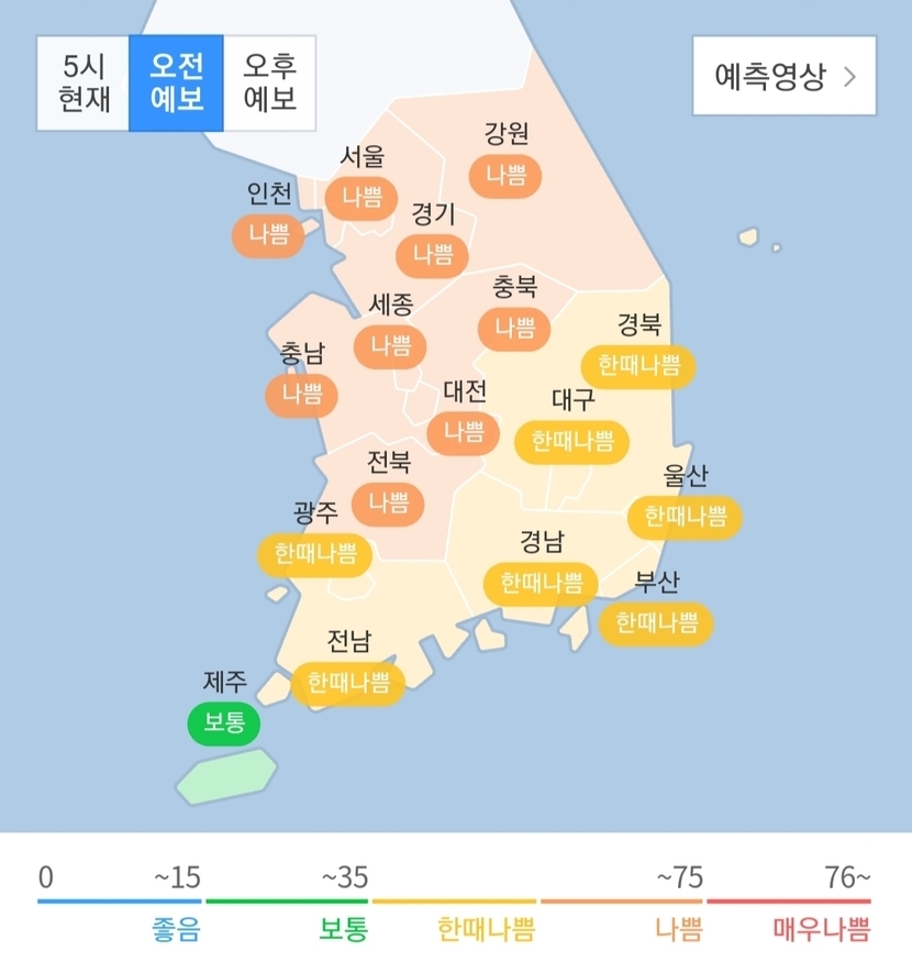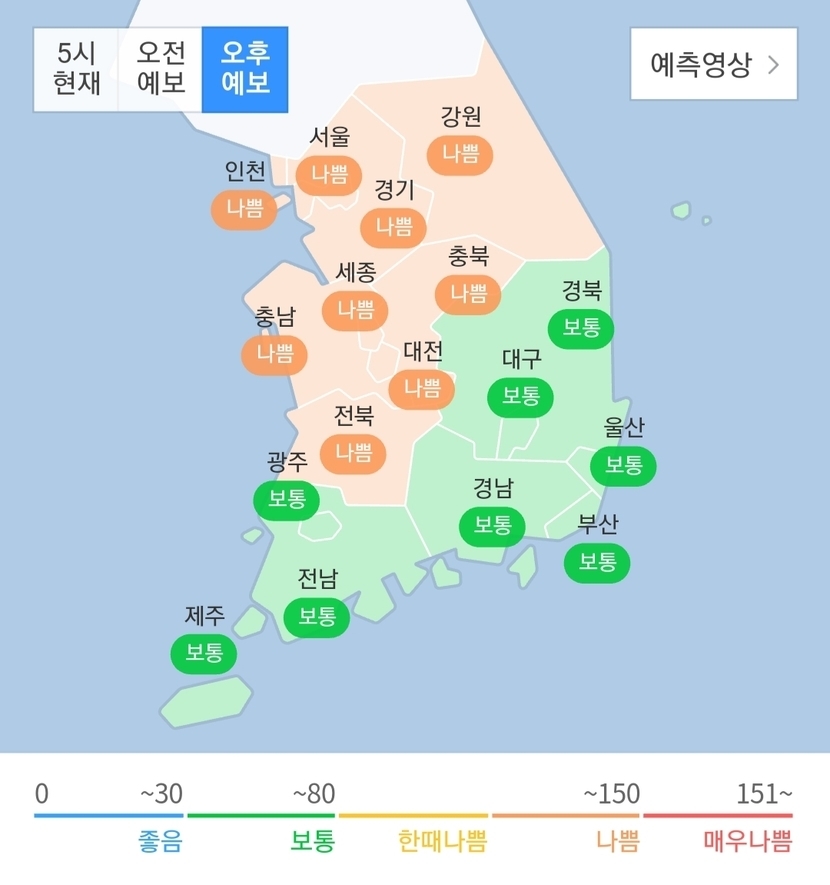 전국 미세먼지 농도