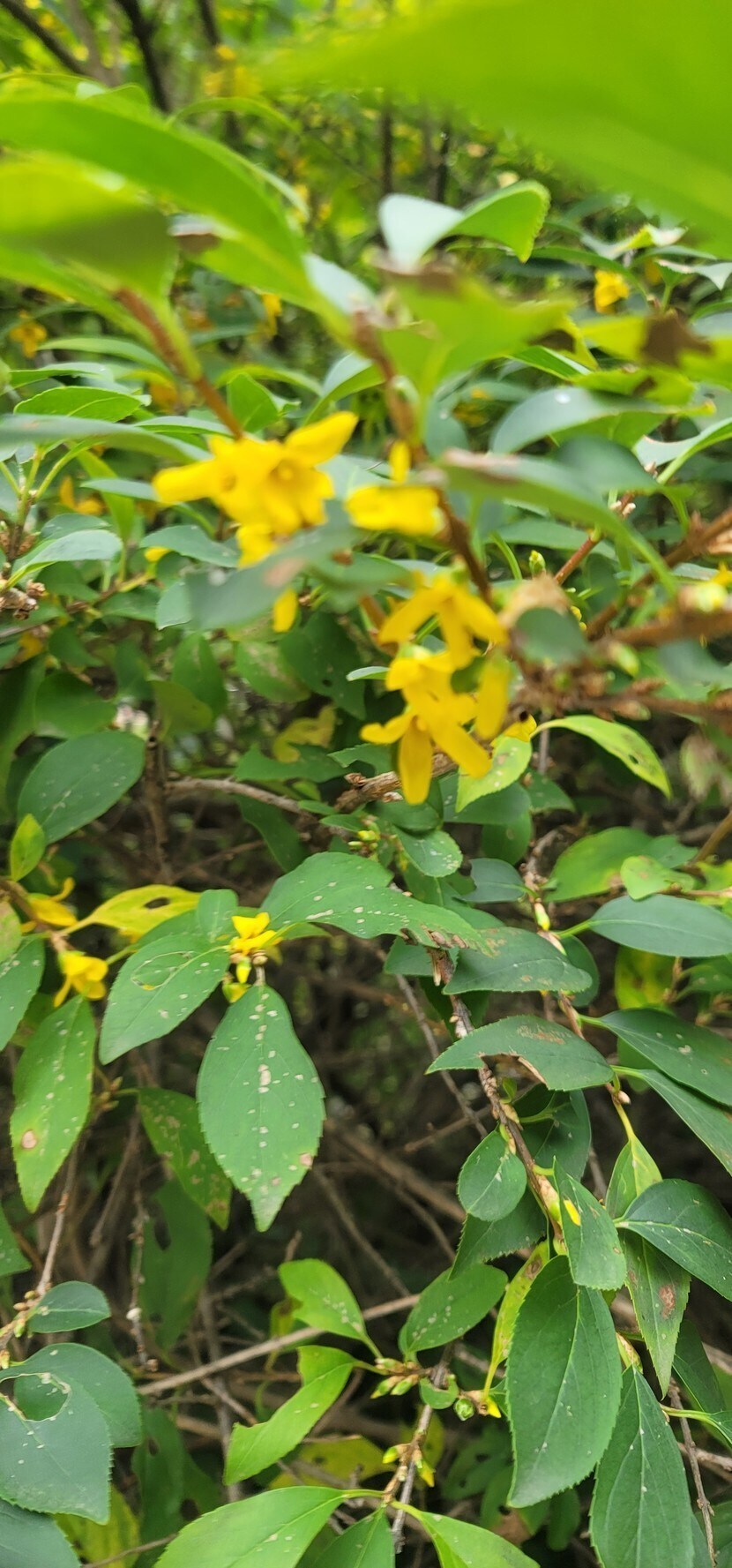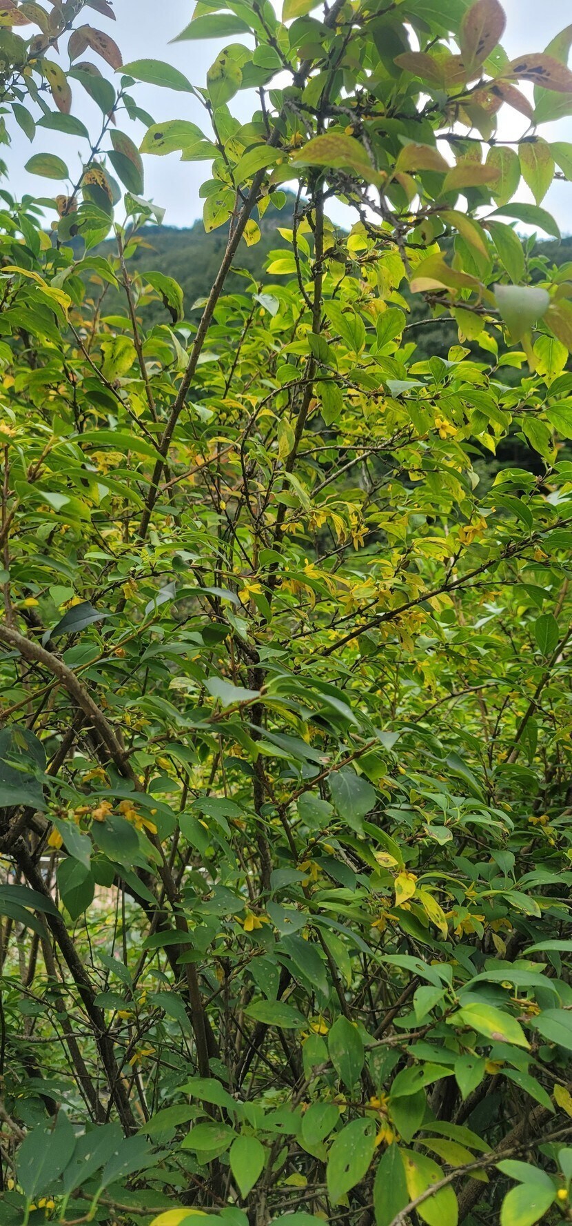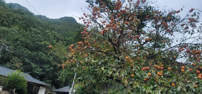 감은 익어가는데 때아닌 개나리가 피어잏어오늘강뭔도한선굴 입구에서