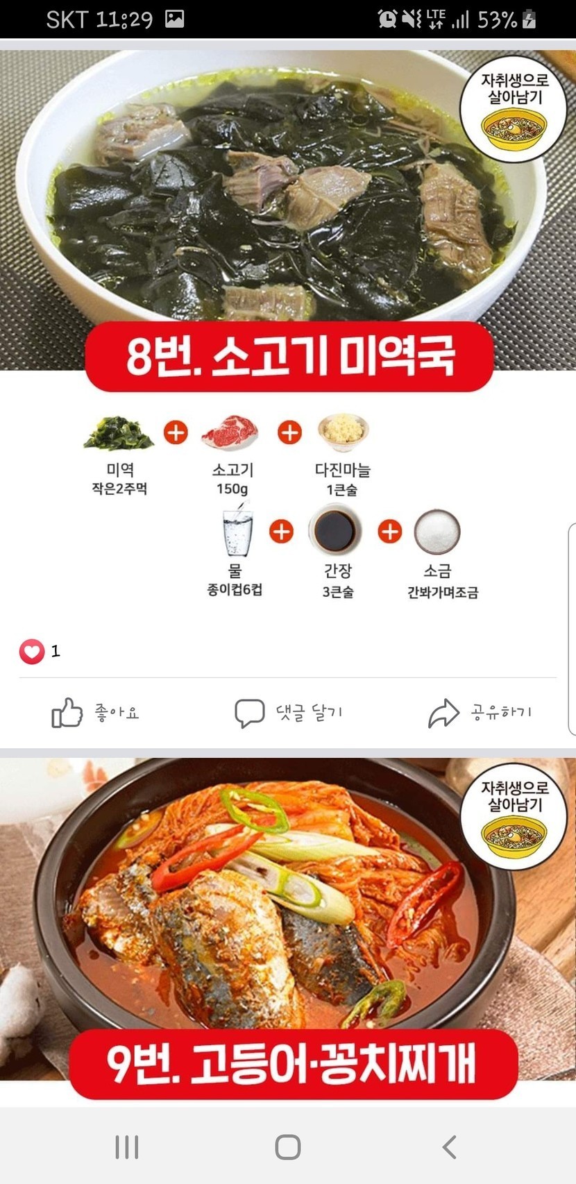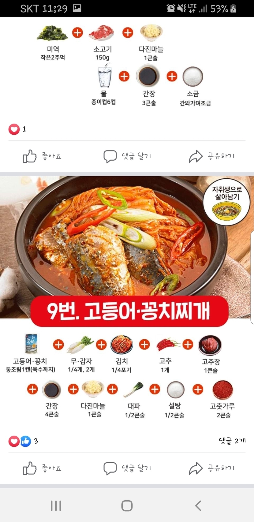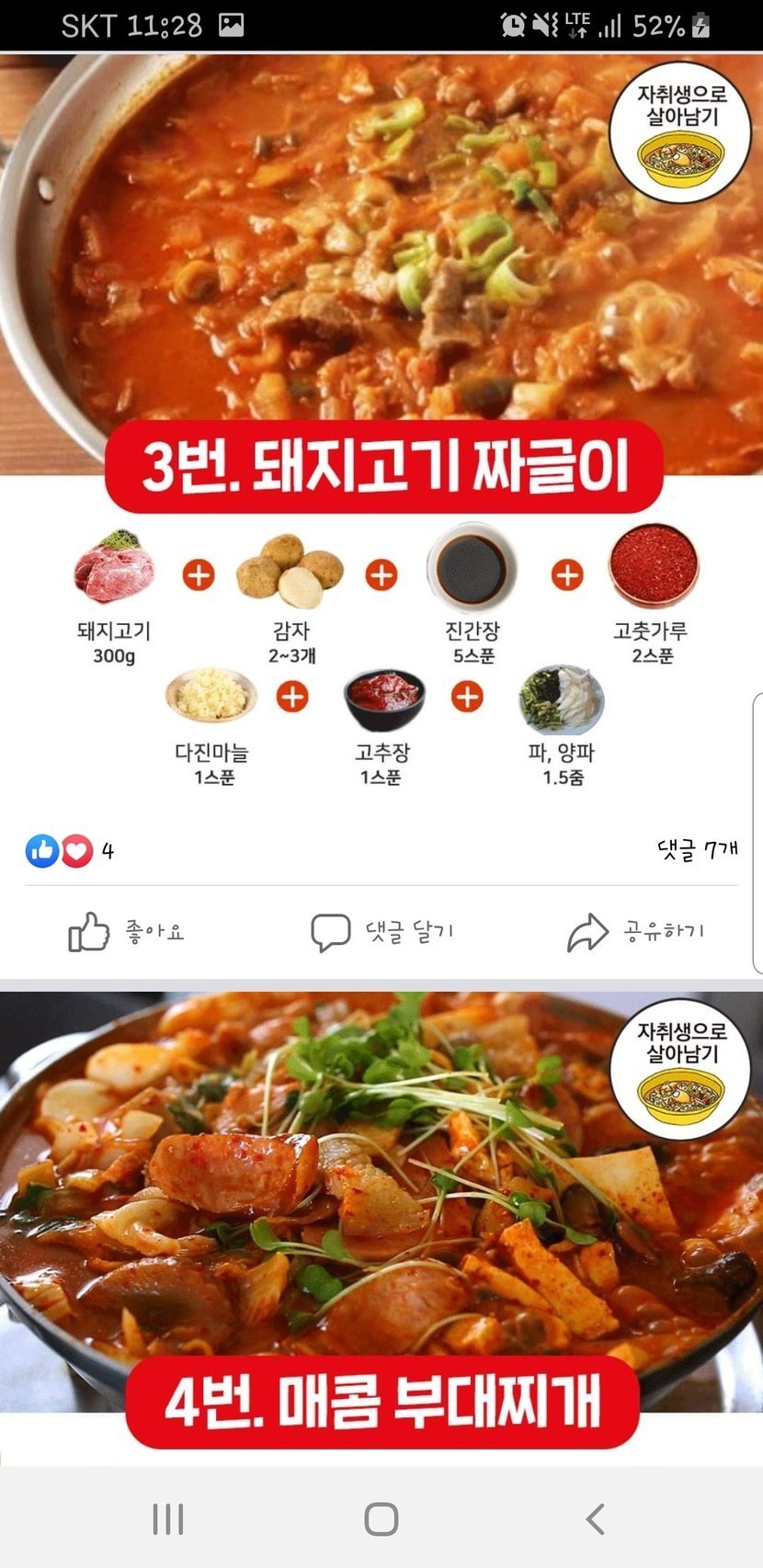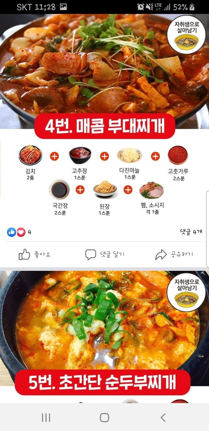 초간단 완성-찌개레시피 모음