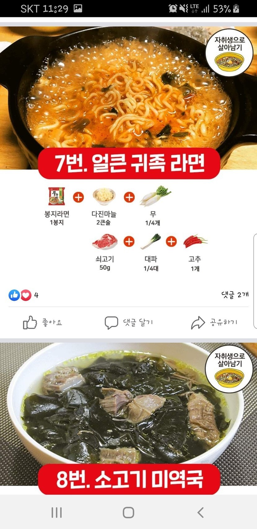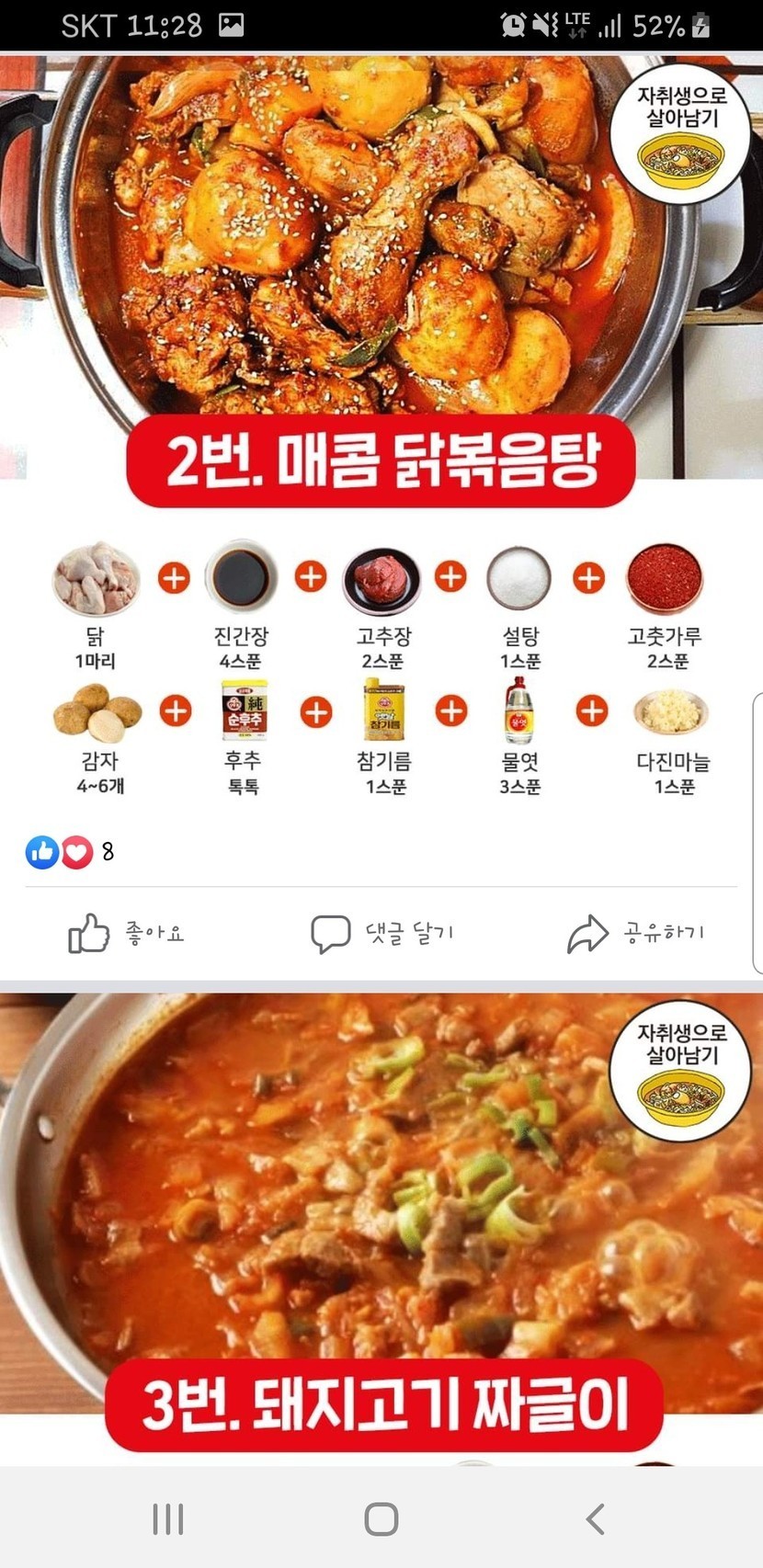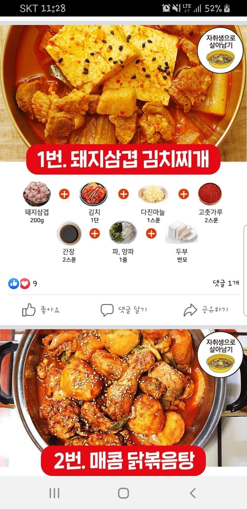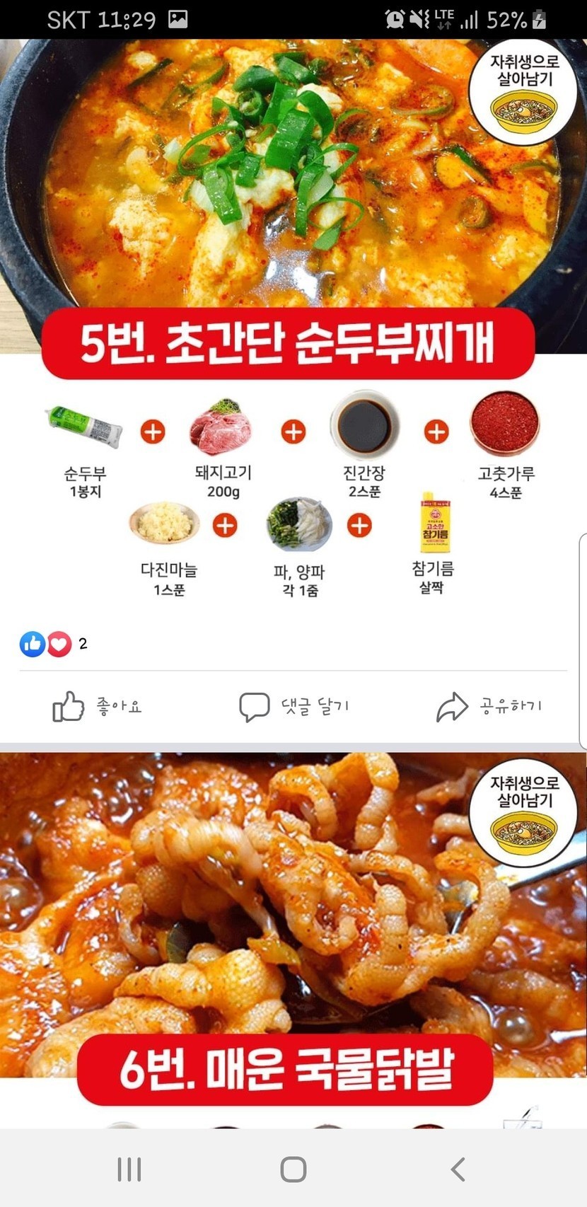 초간단 완성-찌개레시피 모음