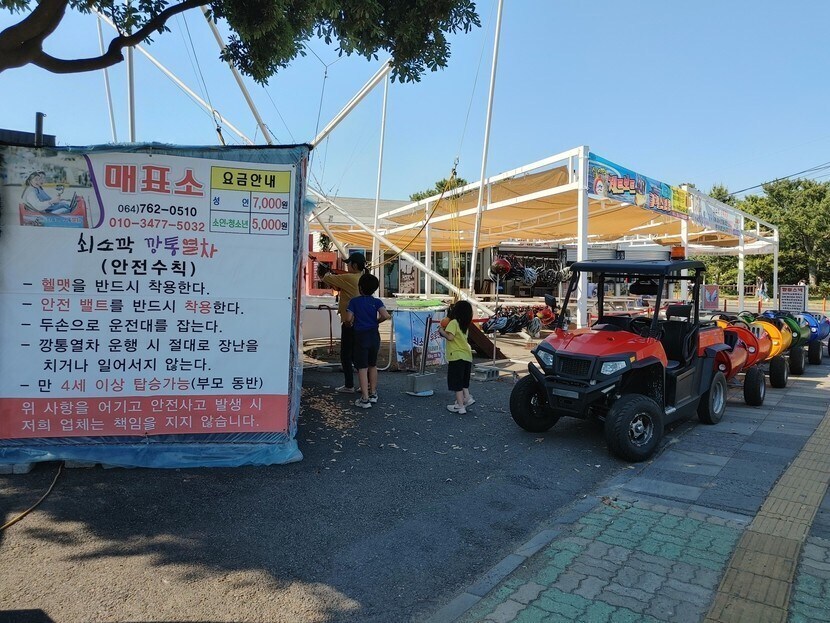 22.09.27 808 읽음 쇠고깍 깡통열차 판타꿀이의 일상리뷰생활 구독하기 14 16 콘텐츠의 수익 5 쇠고깍 깡통열차에 도착하였습니다.다른 일정을 취소하고 쇠고깍 깡통열차를 타기로 했습니다.쇠고깍 깡통열차(안전수칙)헬맷을 반드시 착용한다.안전 밸트를 반드시 착용한다.두손으로 운전대를 잡는다.깡통열차 운행 시 절대로 장난을 치거나 일어서지 않는다.만 4세 이상 탑승가능(부모 동반)타자 마자 노래 음악소리가 들리고 주변 풍경을 보면서 달리는데 시원하면서도 재미있더라구요!조카들도 좋아하더라구요 ㅋㅋㅋ 16 0 / 300 입력