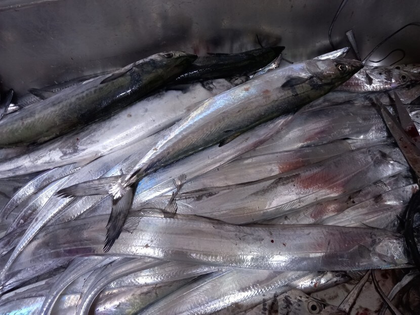 사위가 낚시로 잡아온 갈치