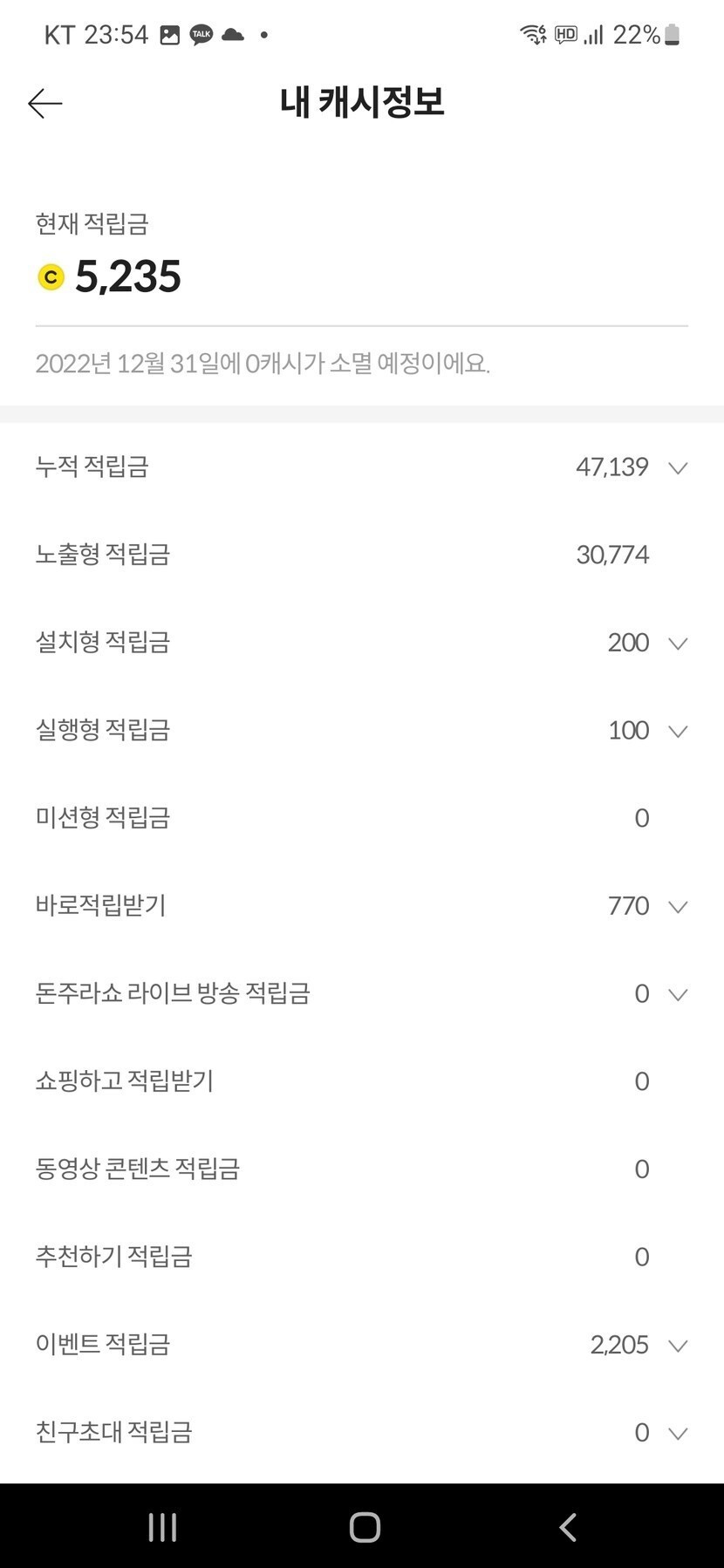 20221008 캐시 현황