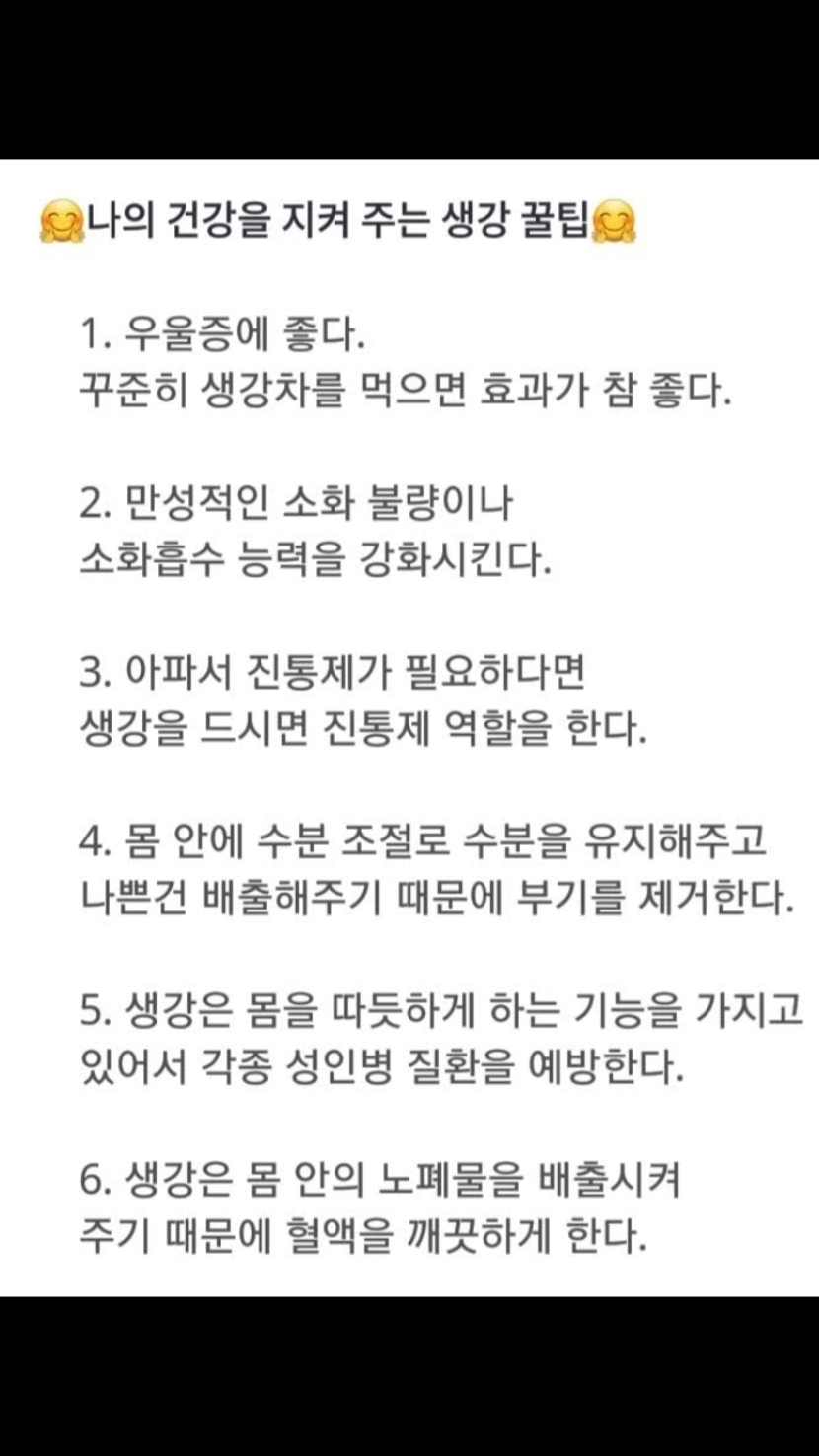 20.03.11 1,289 읽음 생강꾸준하게 드시고 건강하세요~~~ mihwa4331 구독하기 4 30 콘텐츠의 수익 49 꾸준하게 먹은 결과 소화력도 좋아진것 같고 몽도 차가웠었는데 따뜻한게 느껴 집니다. 여러분도 꾸준하게 드셔보세요. 30 0 / 300 입력