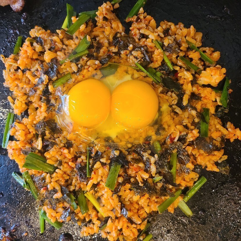 솥뚜껑 삼곂살과 쌍란 볶음밥~💖💖