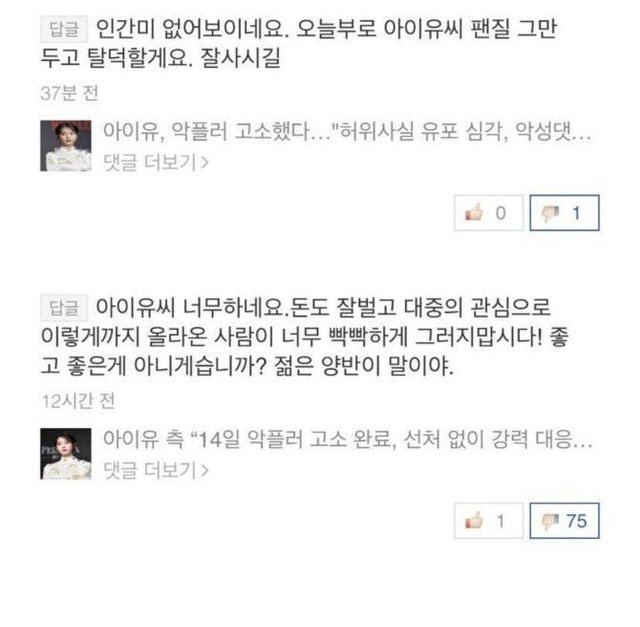 아이유 악플 고소 기사 반응