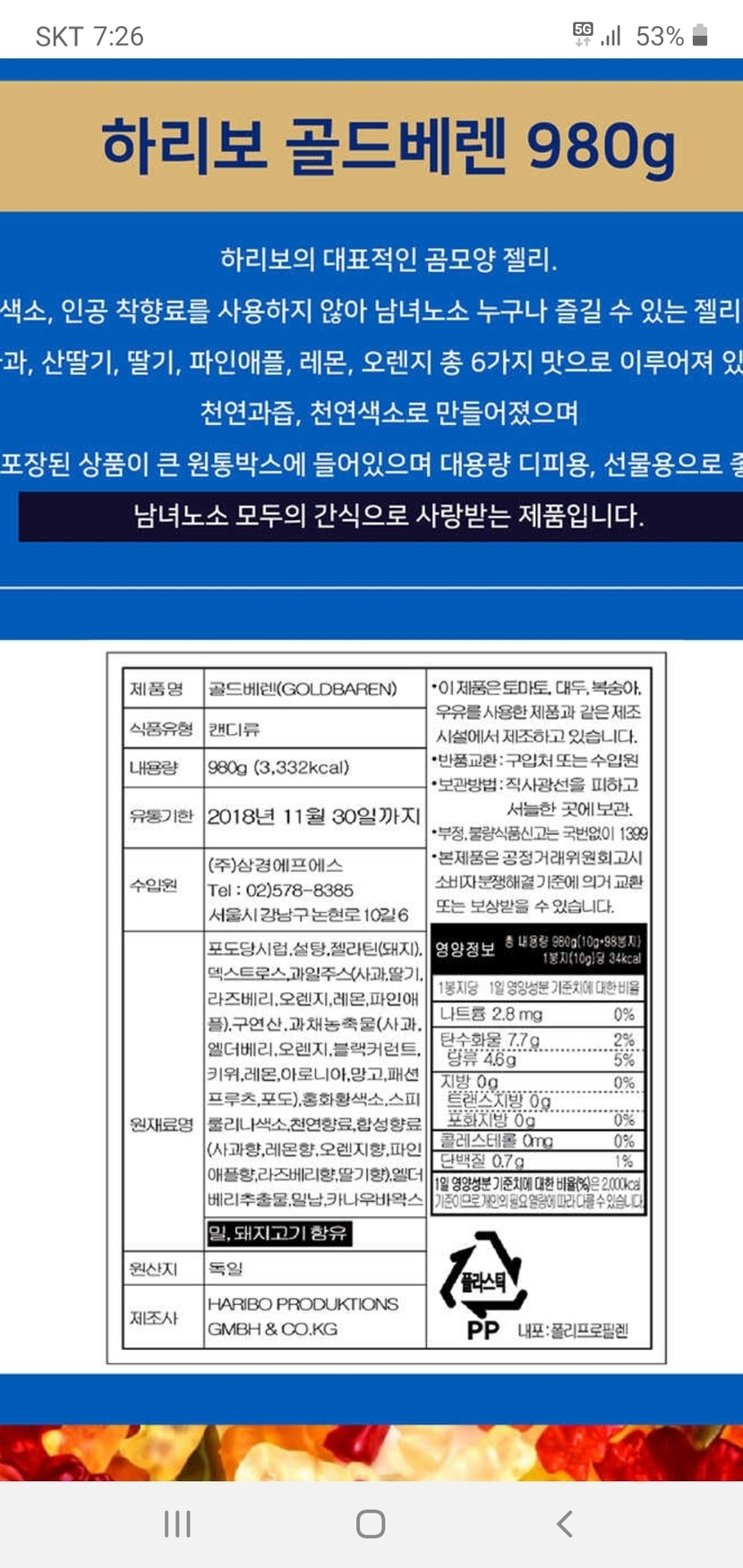 지금판매하는 하리보젤리 유통기한보소.