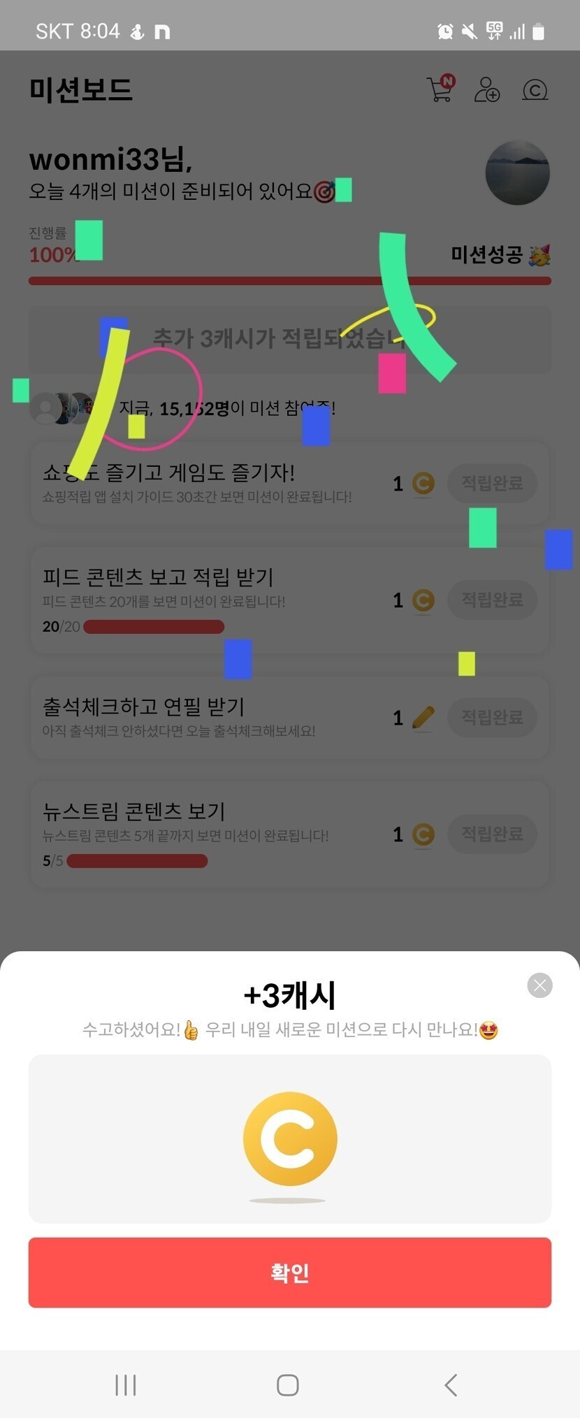 3캐시받았어요
