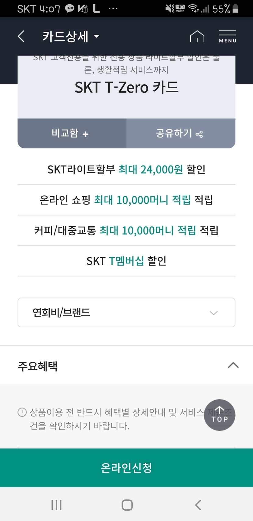 SKT T-Zero 카드 발급신청