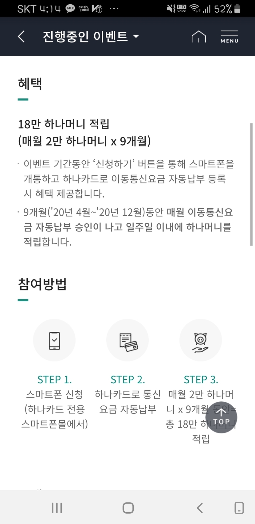 마침 하나카드사에서 이벤트진행을하더라구요