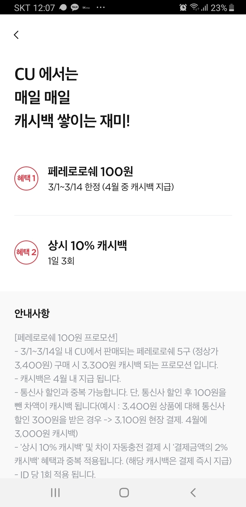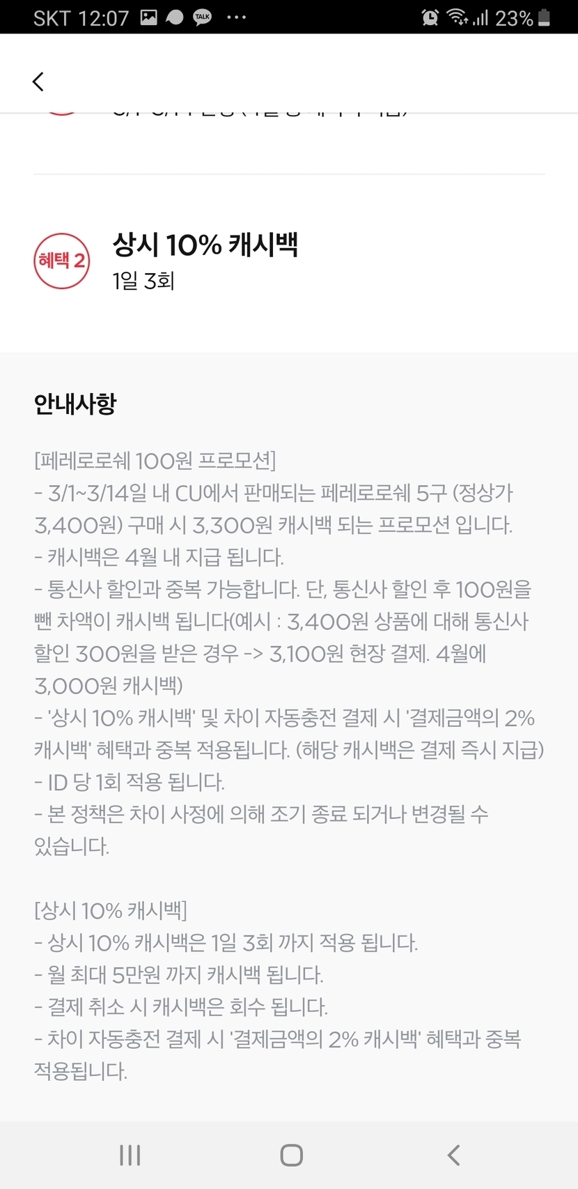 20.03.14 299 읽음 차이결제 페이백 이벤트 (오늘까지) 호호호홋1215 구독하기 0 9 콘텐츠의 수익 38 cu에서 페레로로쉐 100원에 구입하기와 하루3번까지 10%페이백 이벤트네요 9 0 / 300 입력