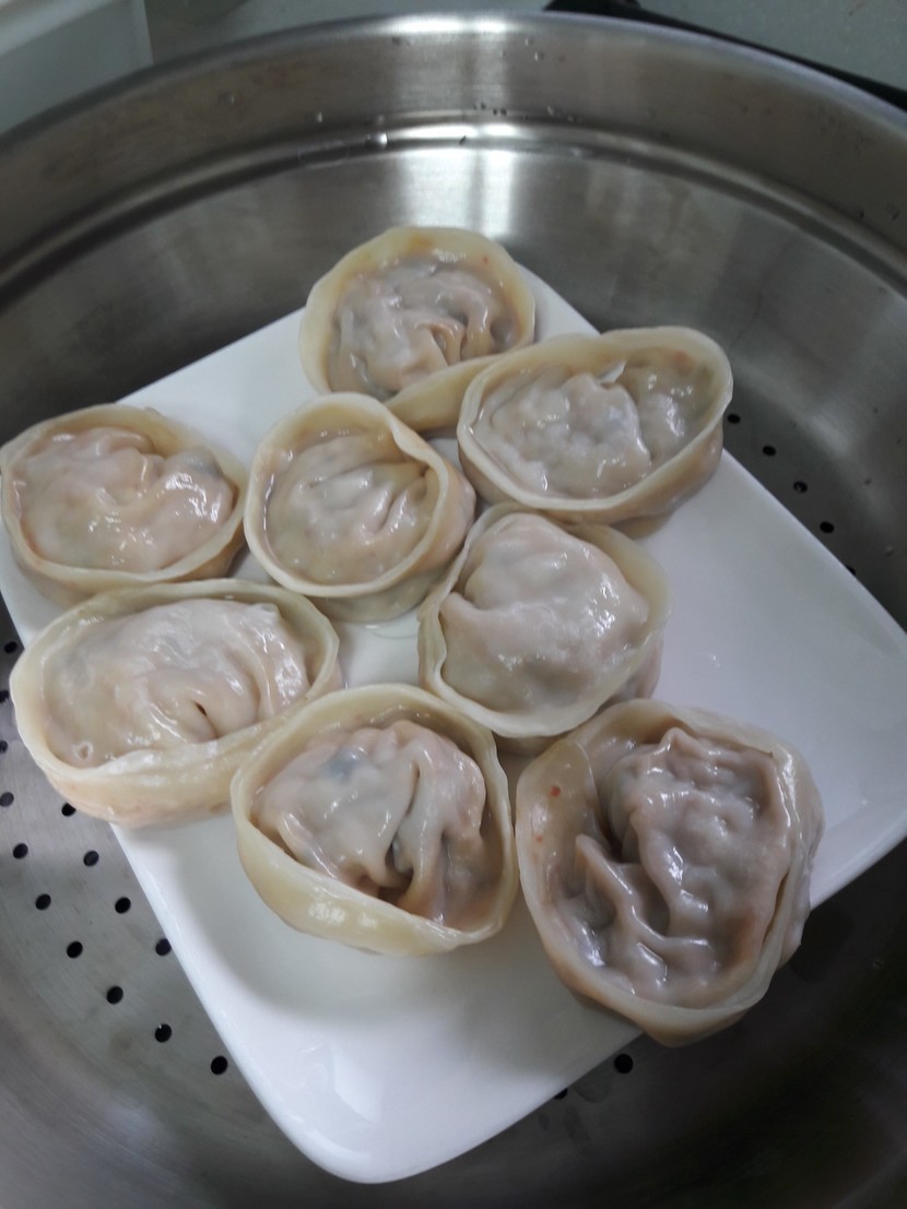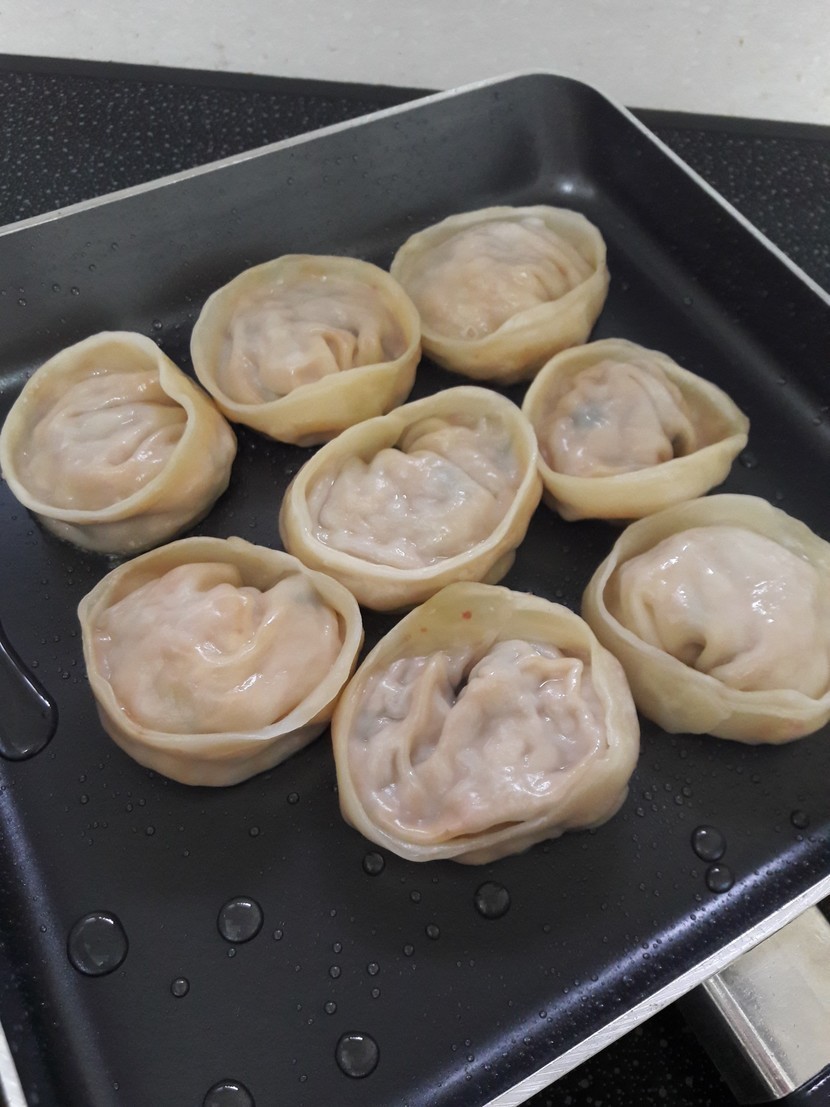 냉동해 놓은 만두를 찜기에 살짝.