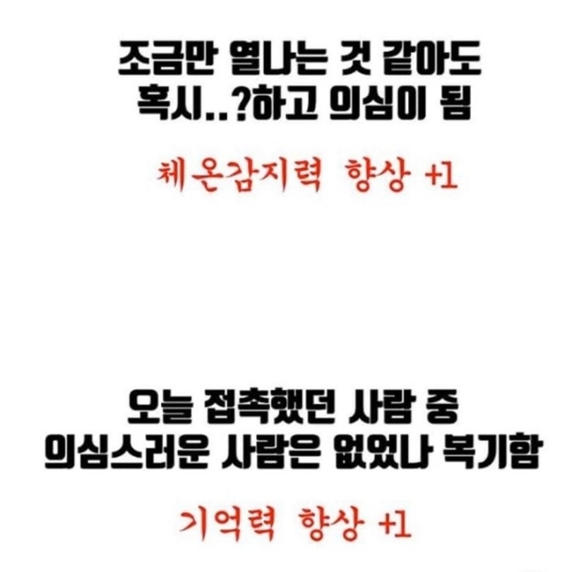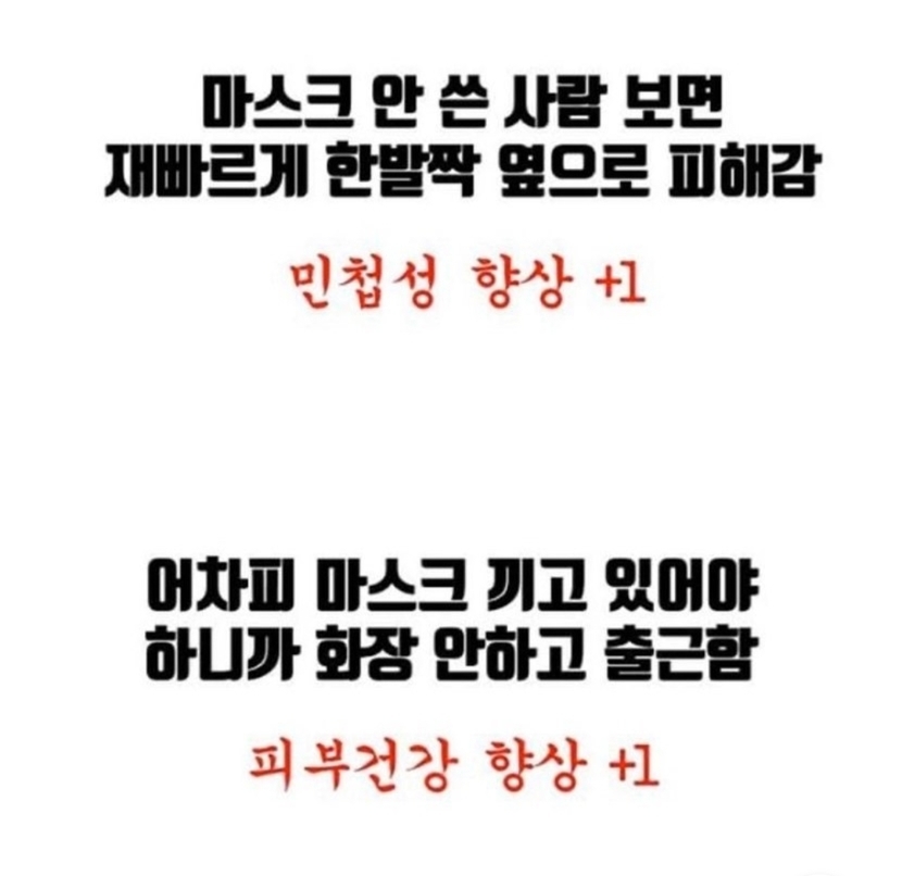 20.03.15 325 읽음 @@코로나로 인해 생긴 뜻밖의 능력치~!!!@@ 에린0206 구독하기 12 73 콘텐츠의 수익 40 전 전부 향상 된듯 합니다여러분은? 73 0 / 300 입력